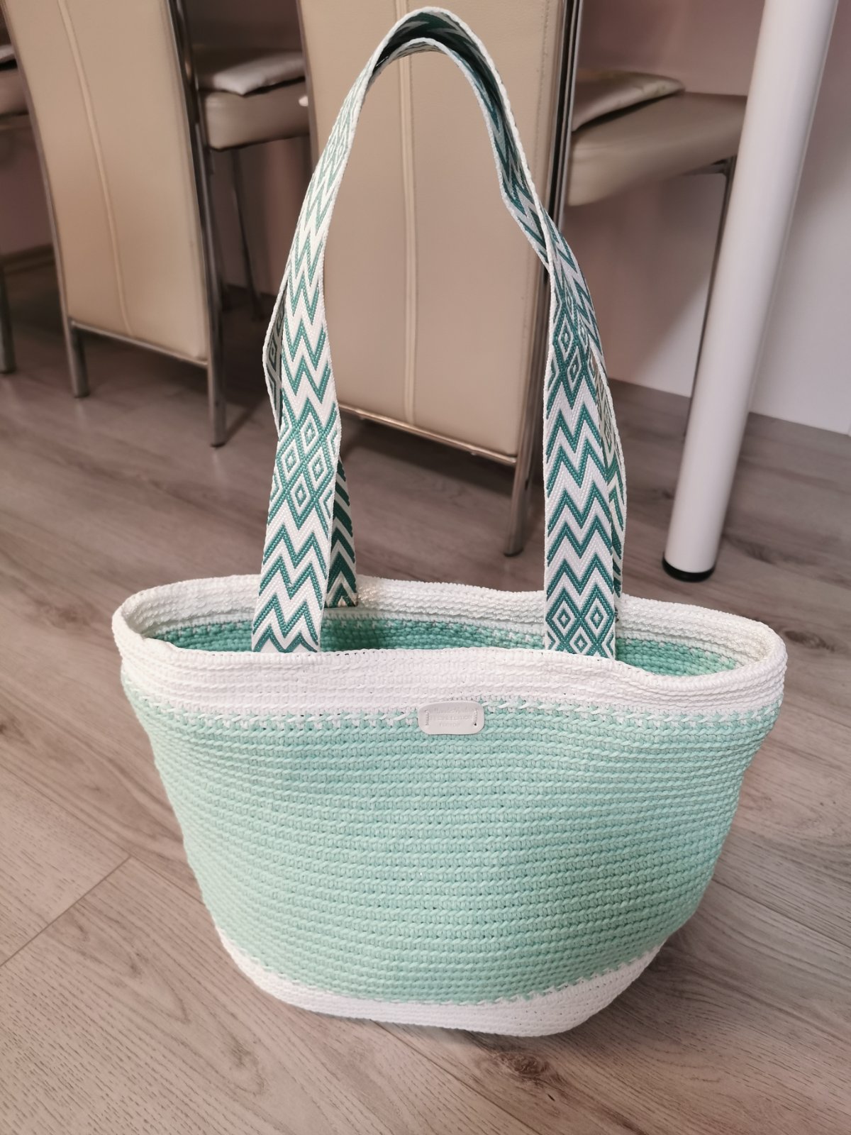 Predám set plážovú tašku a peňaženku, peňaženka skoro vôbec nepoužívaná, taška má známky nosenia z druhej strany (pozri fotku). Taška má vpredu akoby flitre, tie sú bez poškodenia. Predávam len spo...