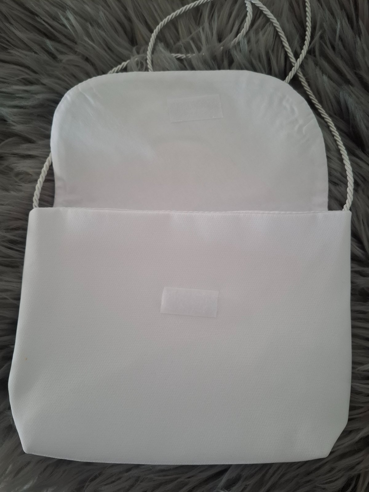 Krásna nová snehobiela kabelka,taška na prvé sväté prijímanie, zapínanie na suchý zips,zabalená cena za kus ,rozmer 19x15cm