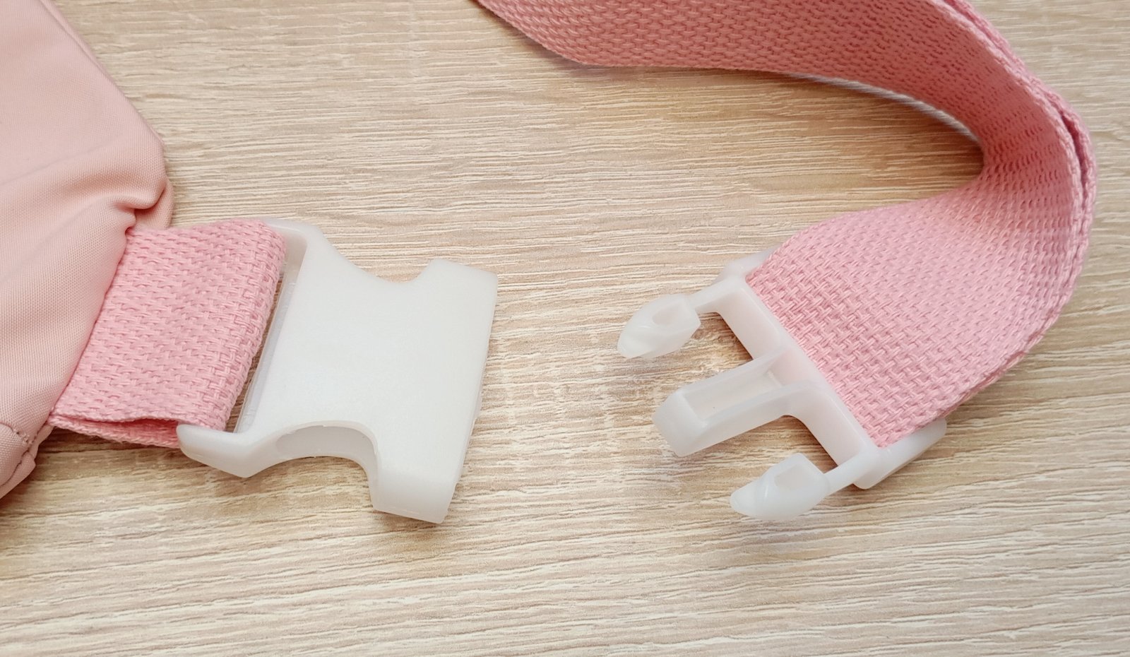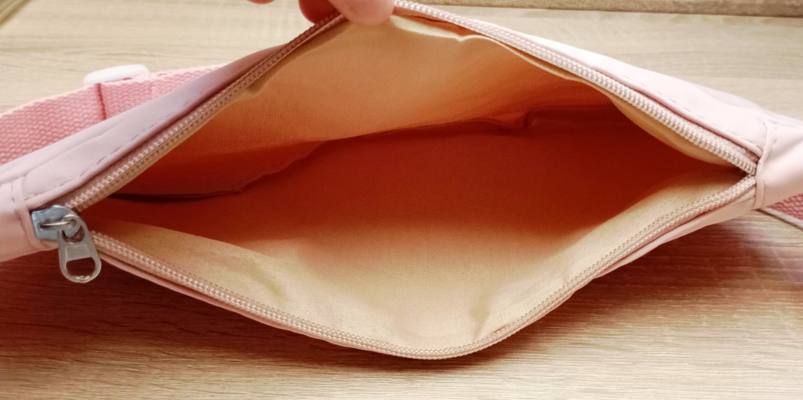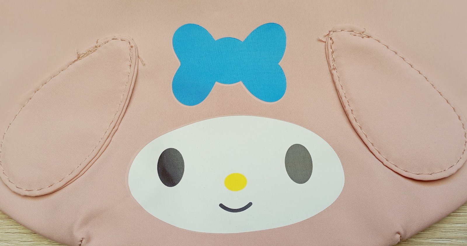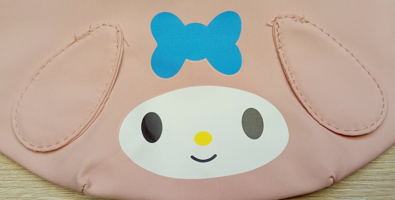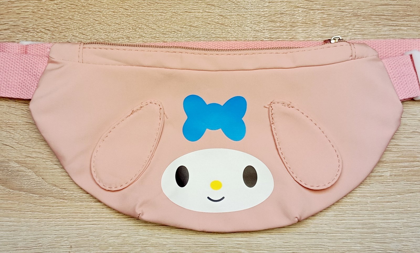 Svetloružová ľadvinka s motívom postavy My Melody od značky Sanrio. Dekoratívne ušká sú našité na prednej časti. Popruh má nastaviteľnú dĺžku.