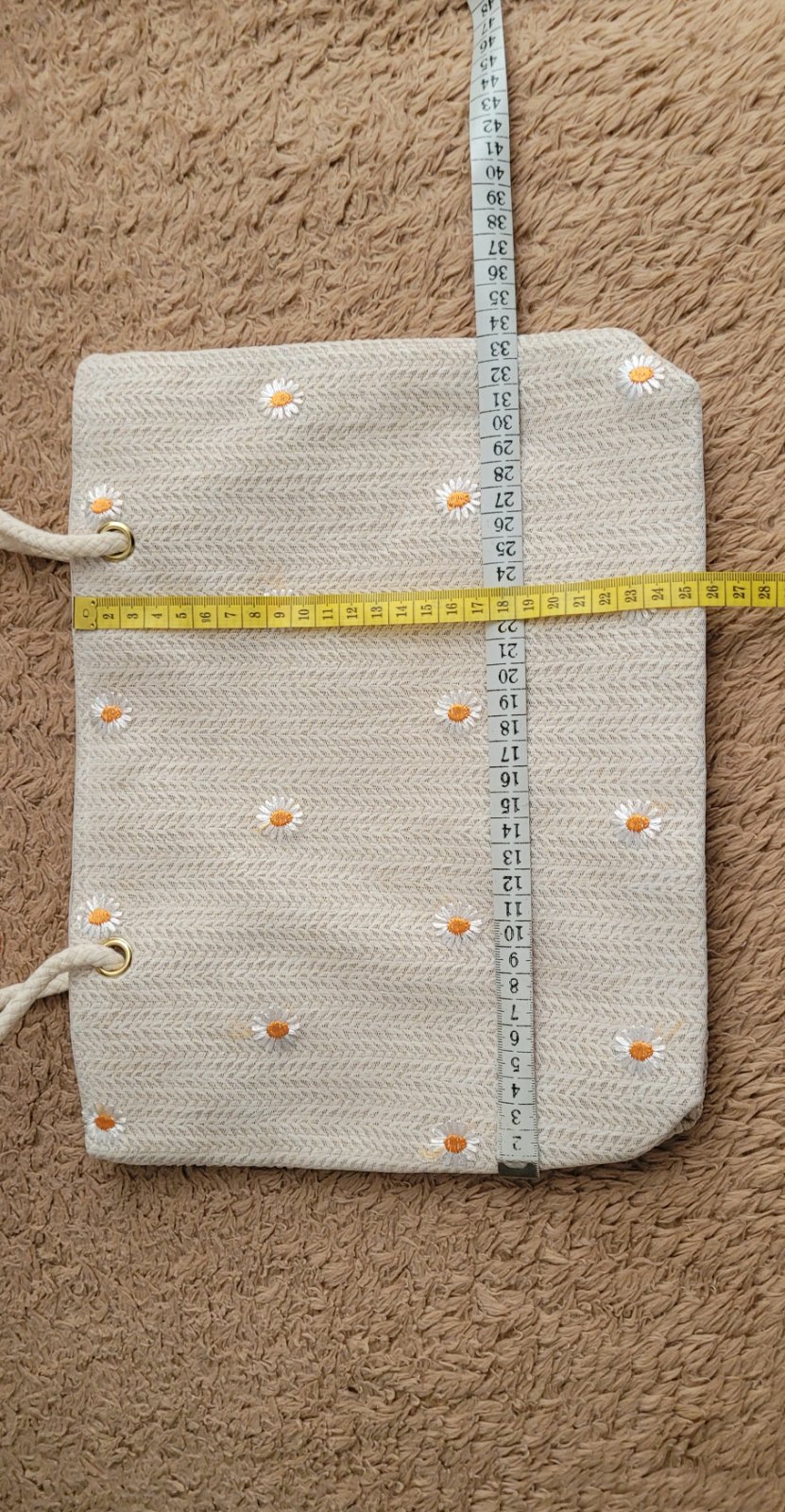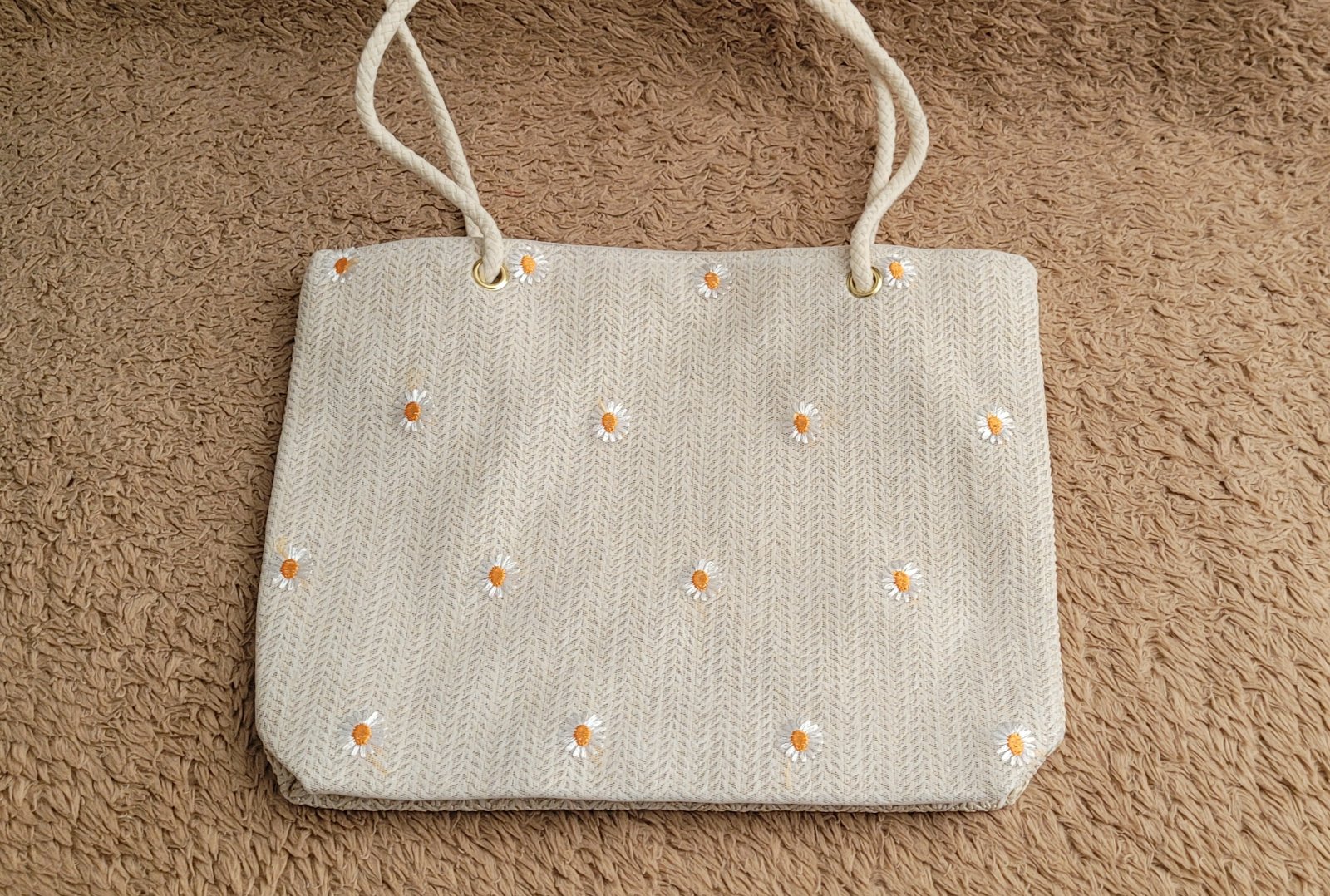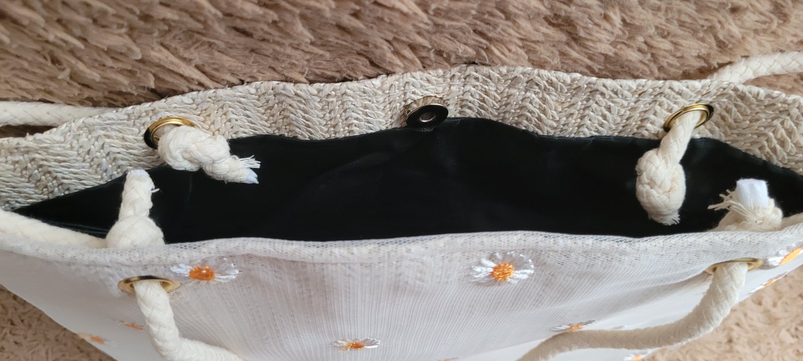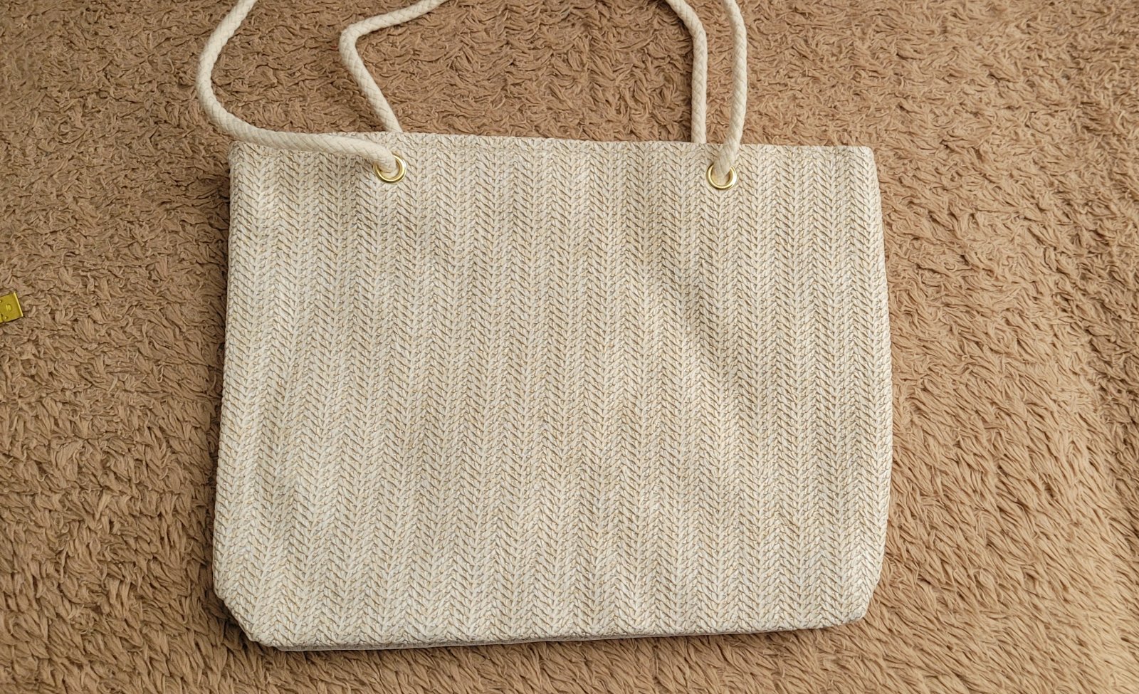 Sv. krémová farba, vo vnútri je podšívka, na rmeno, do ruky hlavne na leto.
