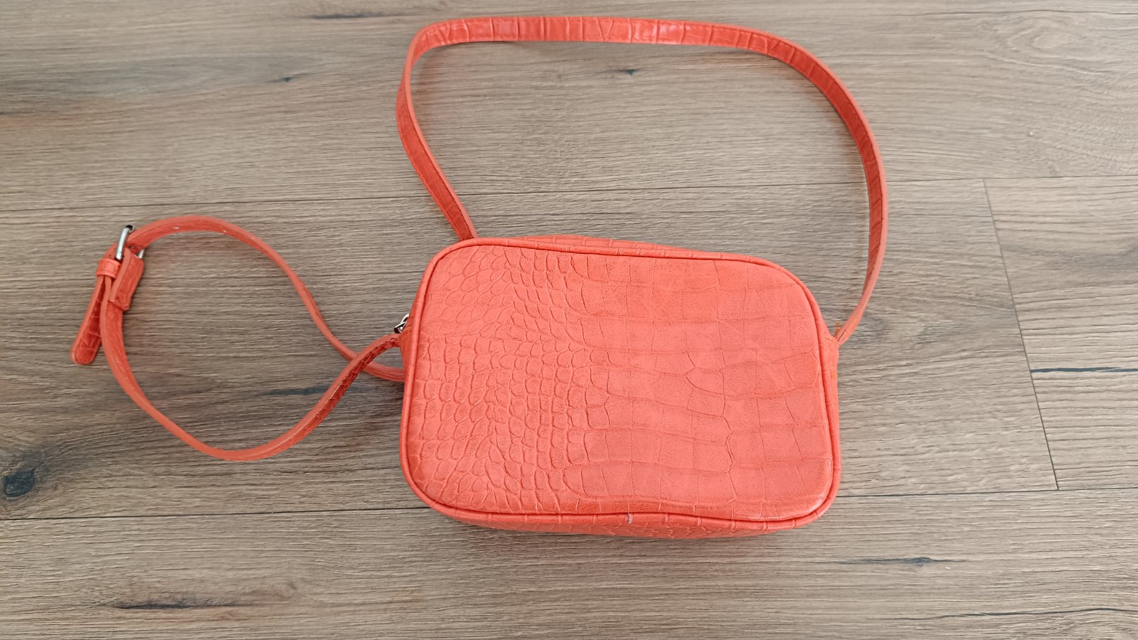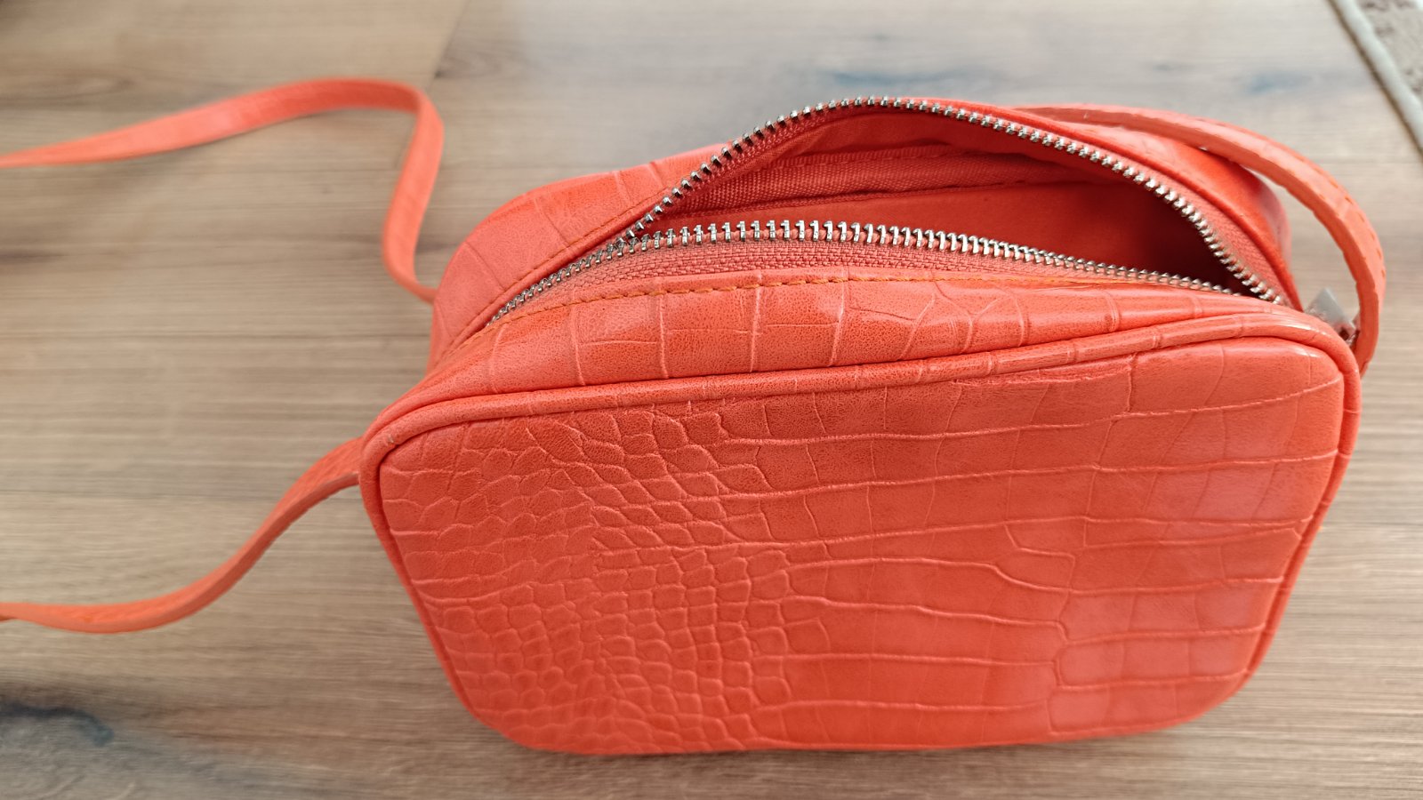 Oranžová krásna farba kabelky. Nosená, nepoškodená,zips funkčný Zn.stradivarius.Rozmer 21cm x 15cmx7cm