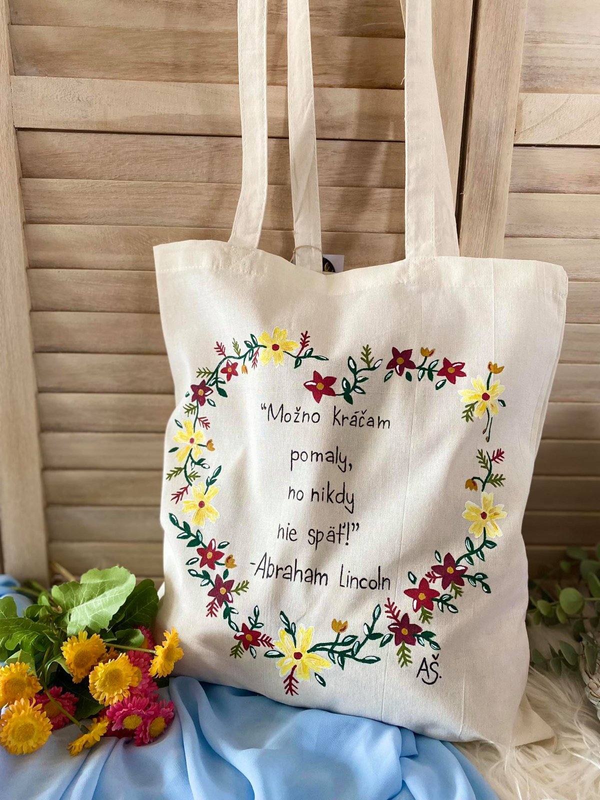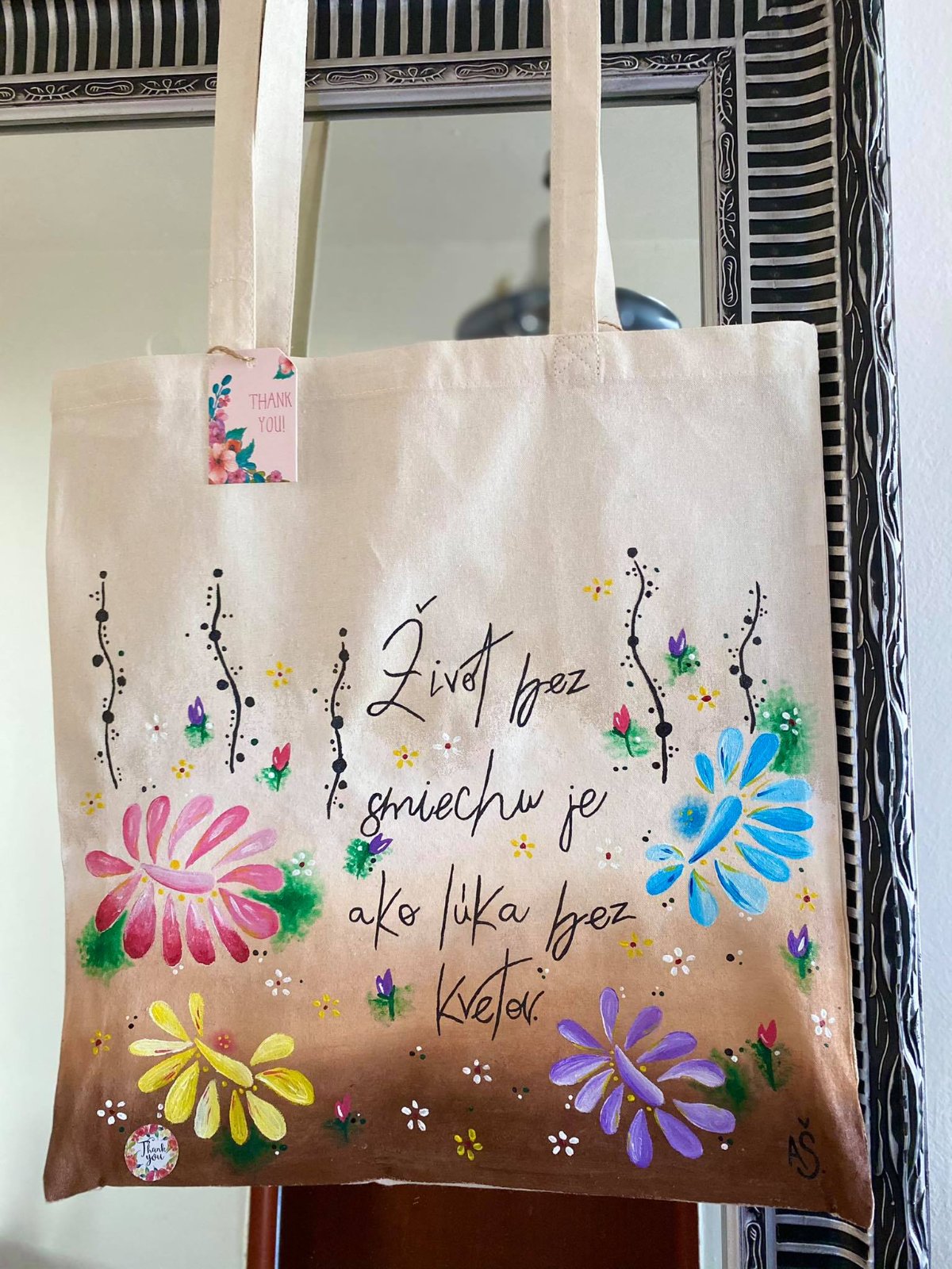 V prípade záujmu môžem vyrobiť tašku aj s Vašim obľúbeným citátom či motívom podľa Vašej predstavy (folk, kvety, čokoľvek čo sa vám páči). Každá taška je originál.