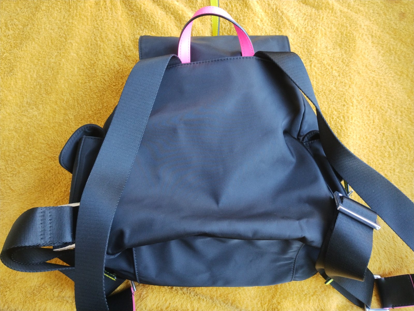 V peknom zachovalom stave na poslednej foto vidno take dve mikro bodky ( určite sa to dá fixou…..Zohľadnené v cene. Popruhy na chrbte sú nastaviteľné .