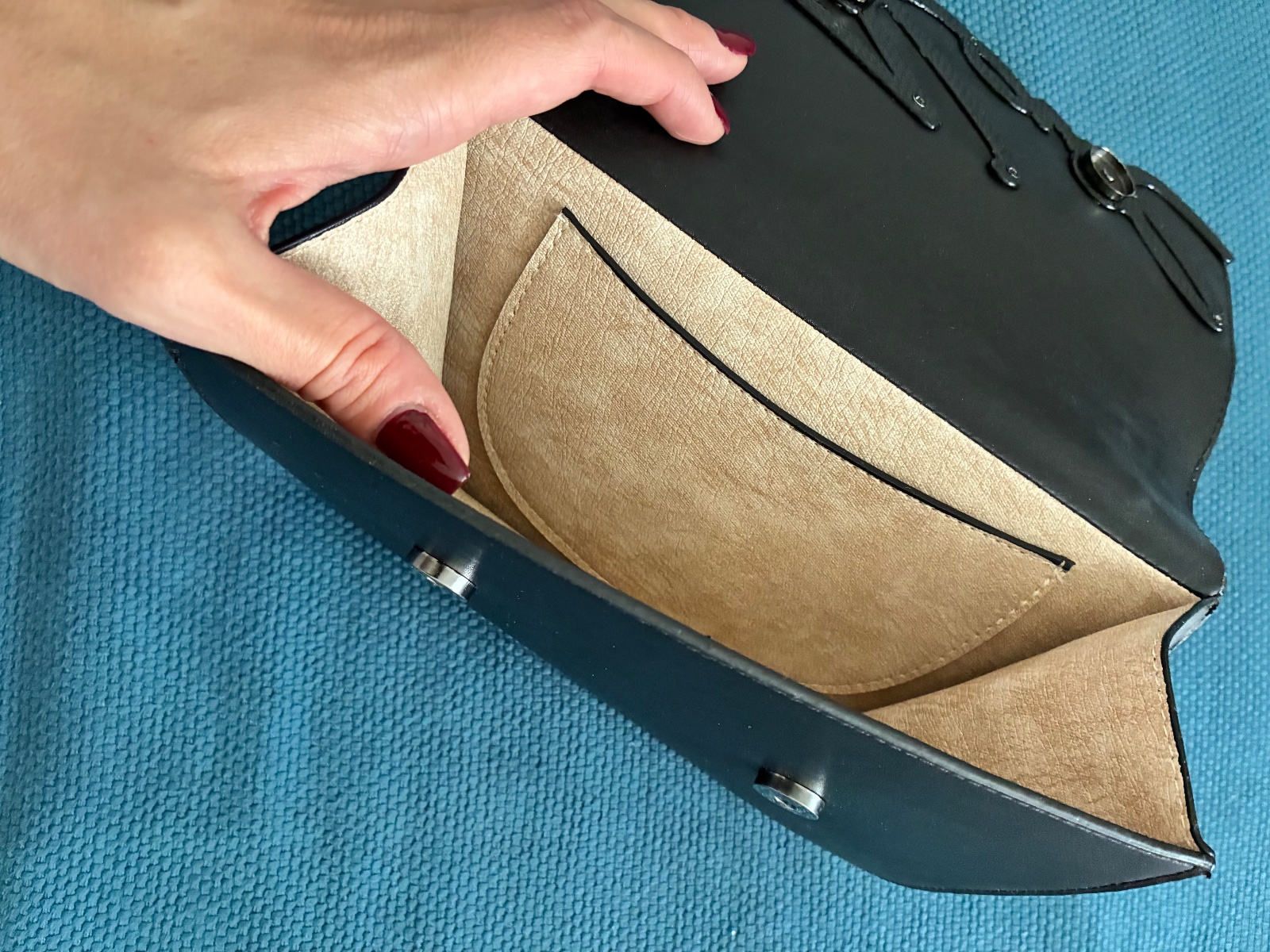 Coccinelle štýlová shoulder flap kabelka materiál: koža farba: čierna so zlatým kovaním Kabelka sa dá nosiť na ramene, alebo popruh vytiahnuť na jednu stranu a bude dlhy veľmi praktický kúsok rozme...