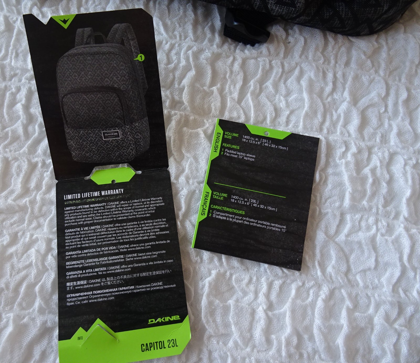 Pohodlný a cenově dostupný batoh z nové kolekce Dakine, který je vyroben z odolného polyesteru 600D a nabízí dvě hlavní kapsy na zip a slušný objem 23 L. V přední kapse jsou umístěné organizační přihrádky kam lze umístit nezbytné věci jako je například telefon, bloček, tužky a podobně. V hlavní kapse je přihrádka pro většinu 15" notebooků. Zádový panel je sice jednoduchý, přesto ale příjemný a pohodlný. Samozřejmostí jsou i nastavitelné popruhy. Vybíráte-li batoh do školy, na výlety či do práce za rozumnou cenu, Dakine Capitol je jedním z favoritů.