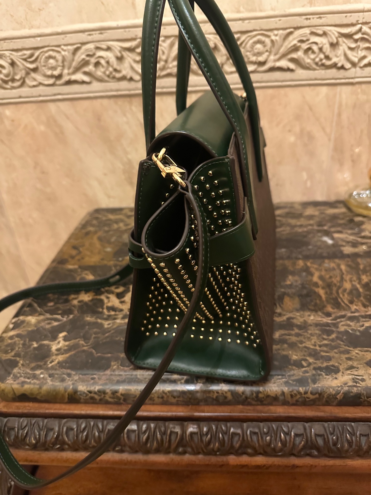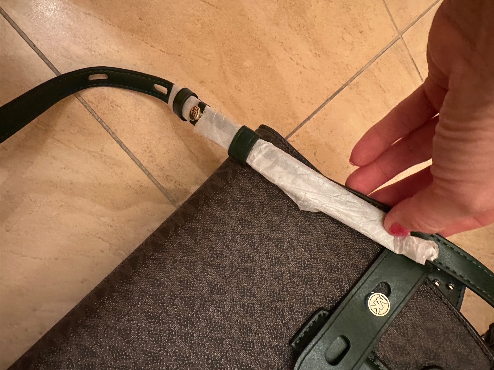 Krasna koženná. Pôvodná cena vysoka. Je nova. Je vidieť na ramienku ktoré je ešte zabalene.