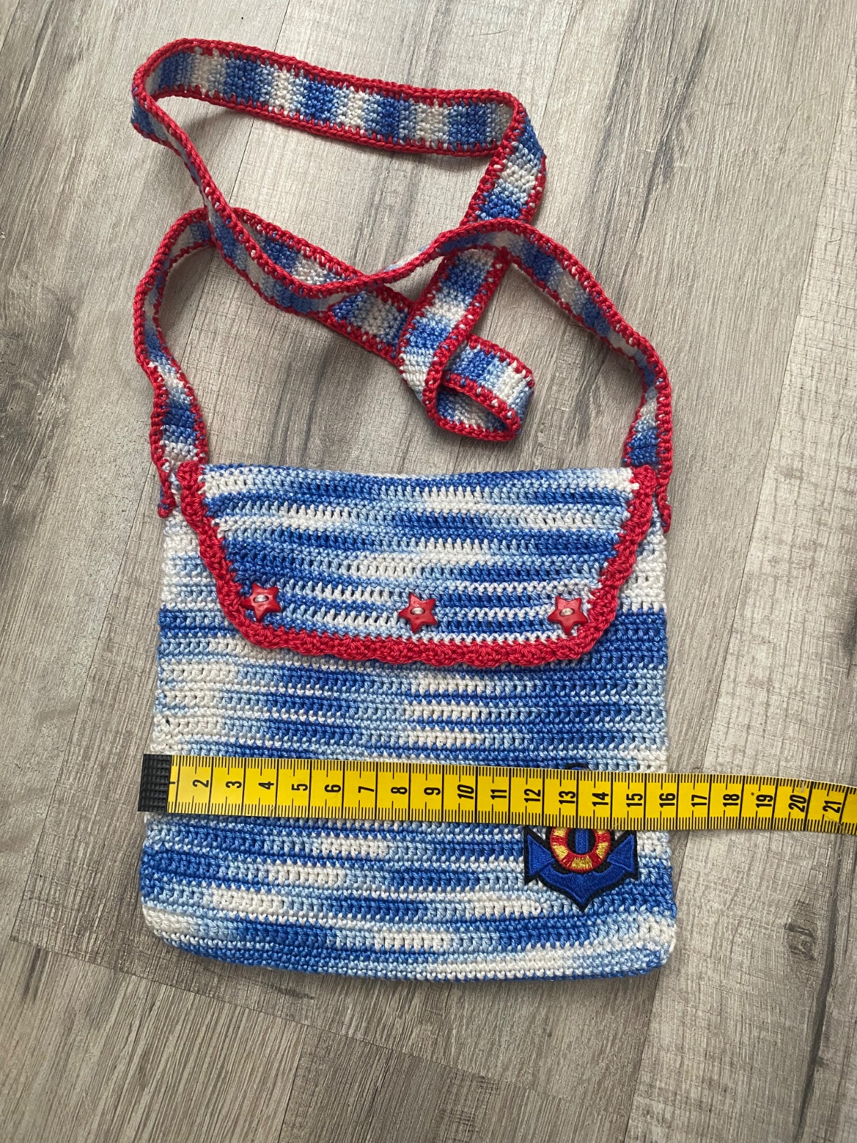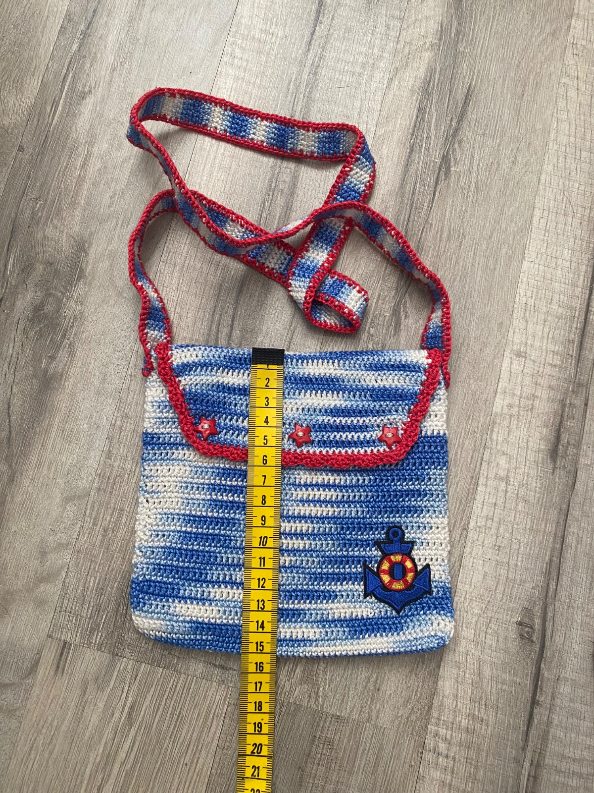 Háčkovaná kabelka pre deti, rozmery na foto. Bez poškodení. Zapínanie na cvoky.