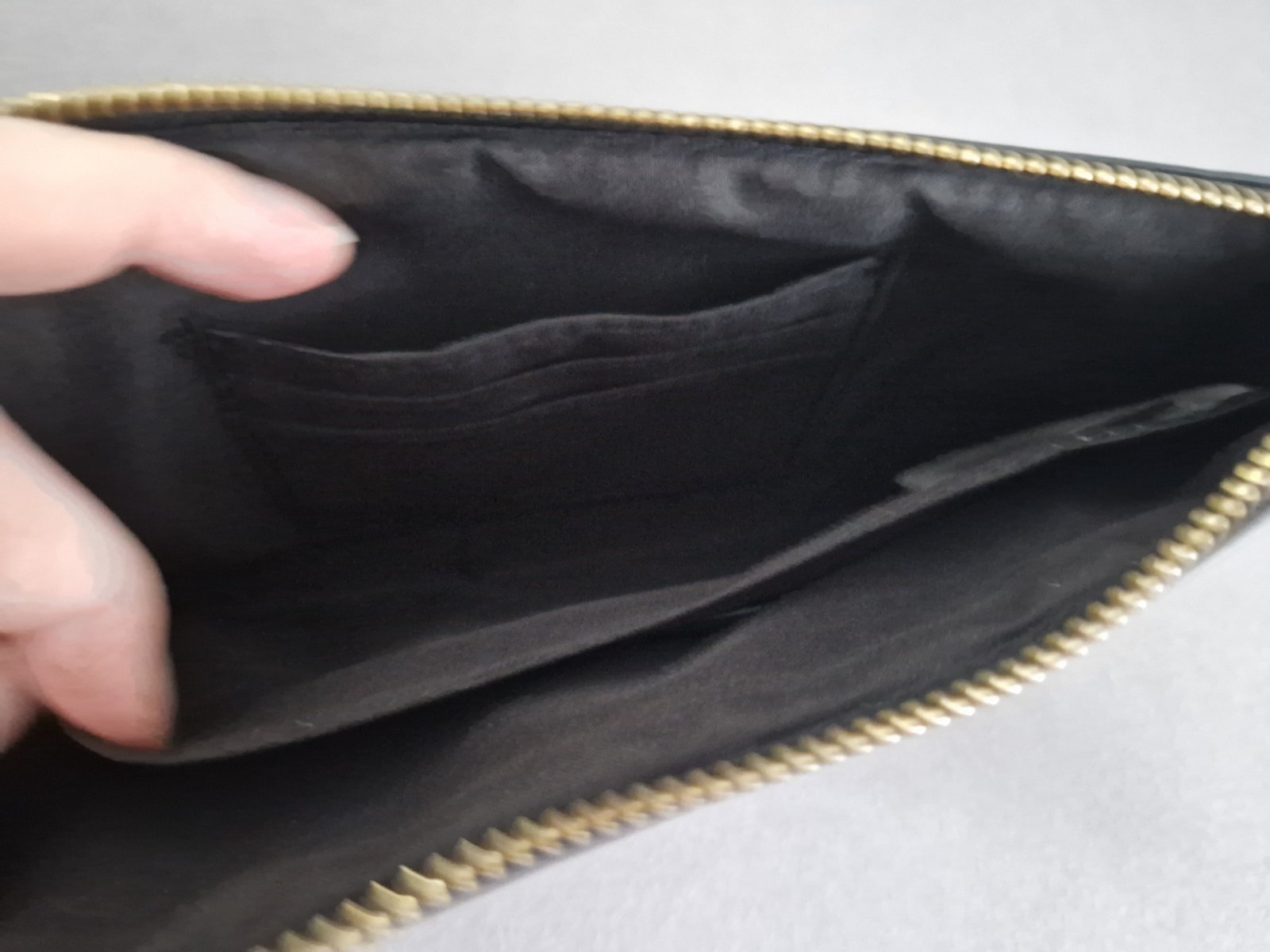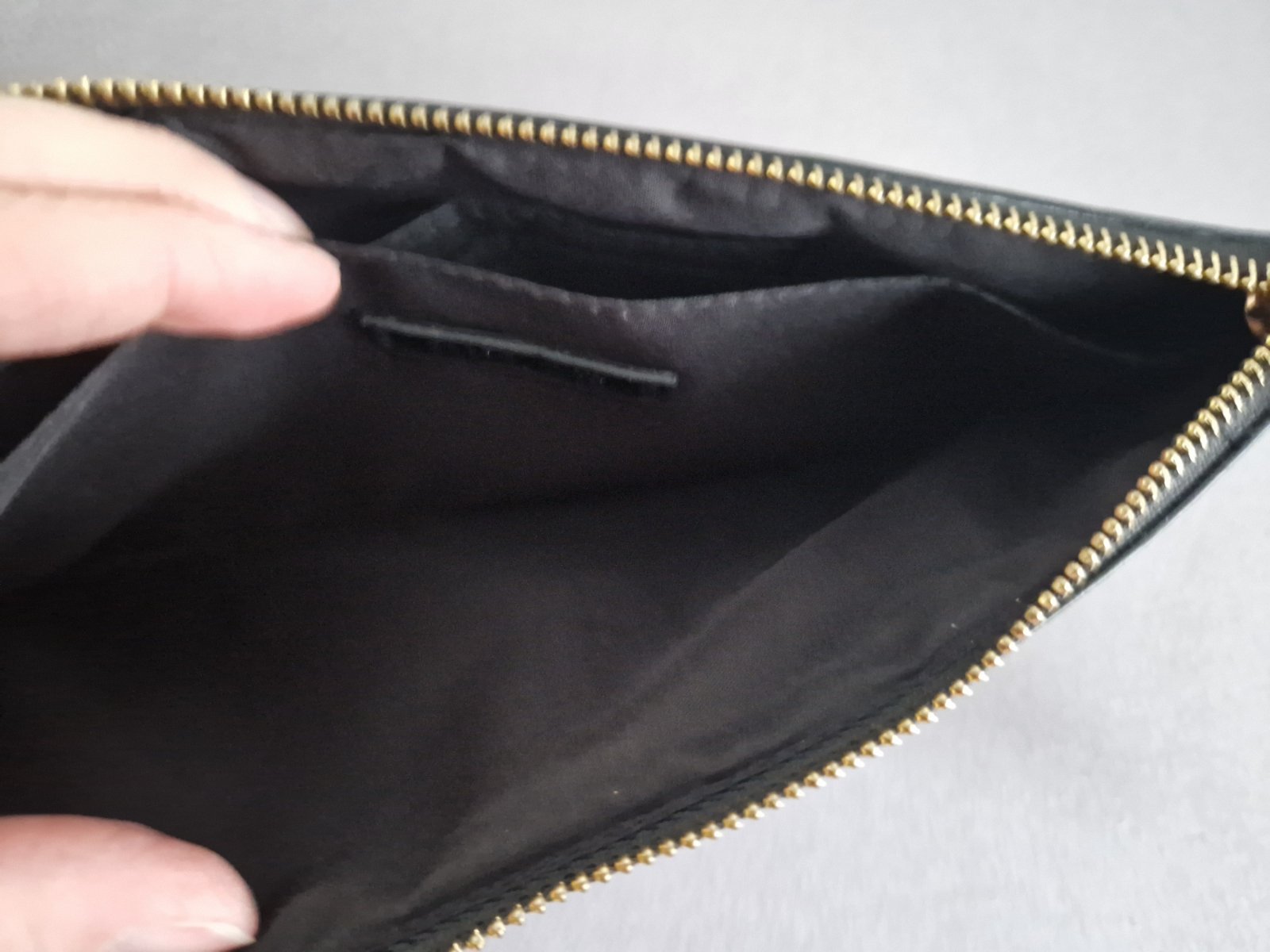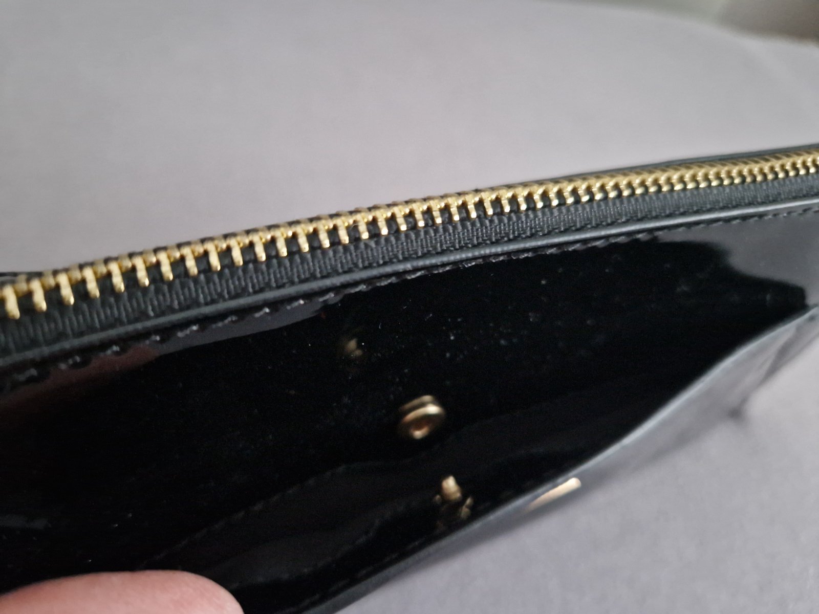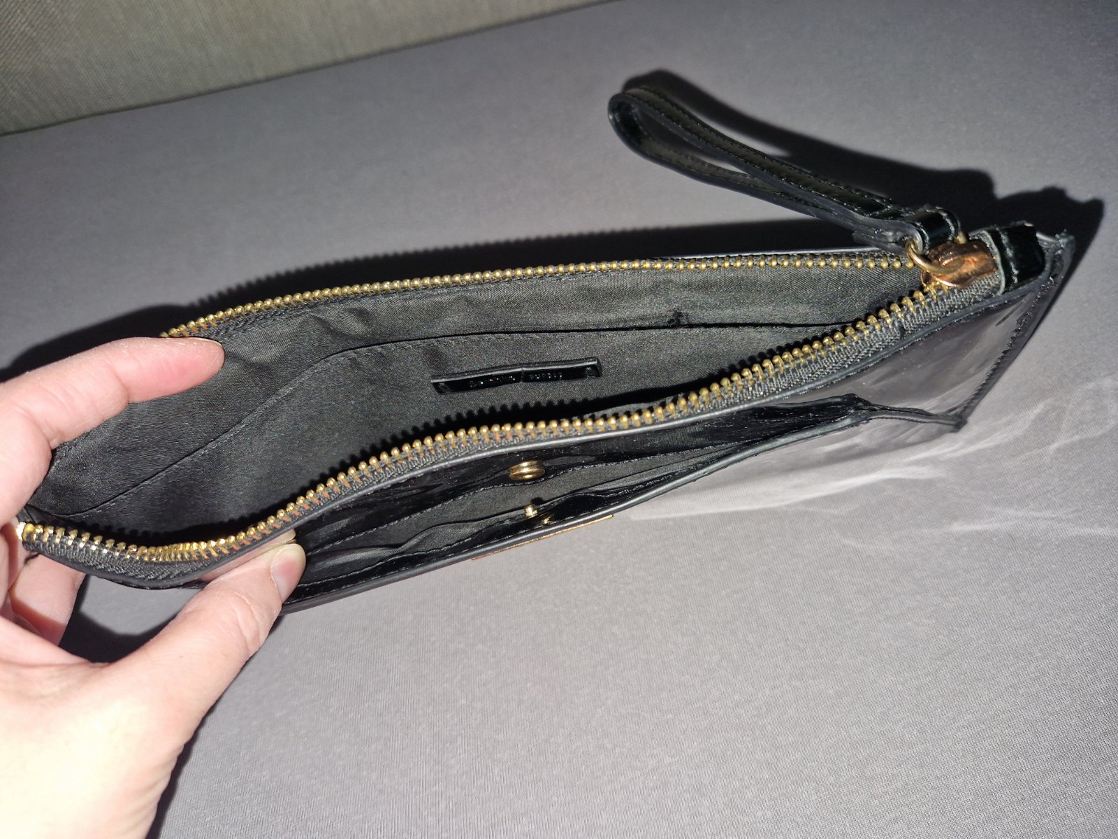 Listova kabelka z Bershky, leskly cierny povrch s odleskom zlatej, raz pouzita, rozmer 27x12x1cm