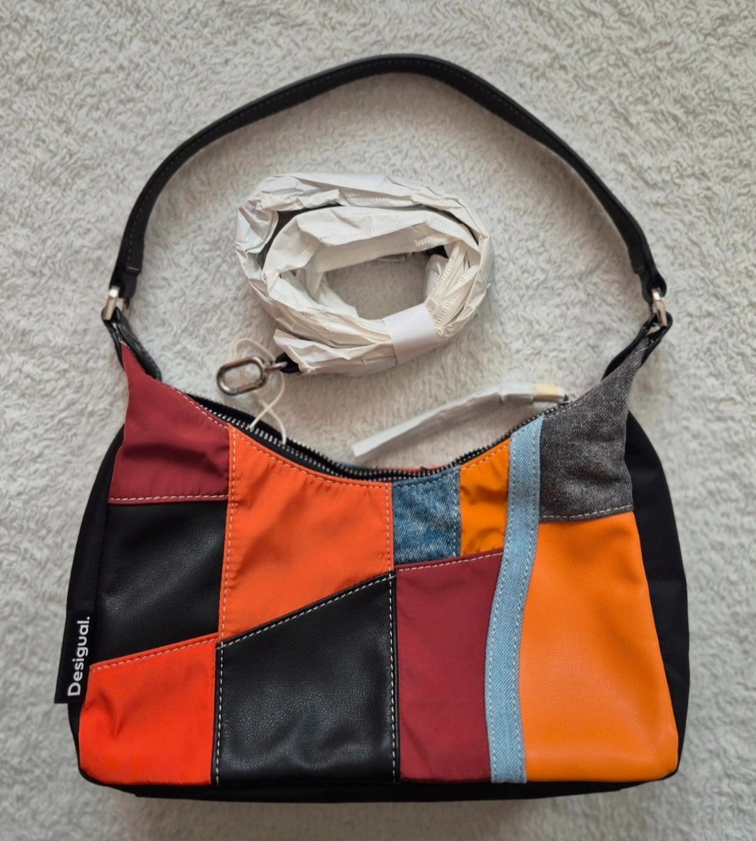 Krásna nová kabelka Desigual v patchworkovom vzhľade. Rozmer oficiálne 27 x 14 cm, roztiahne sa však. Visačka nechtiac odtrhnutá.