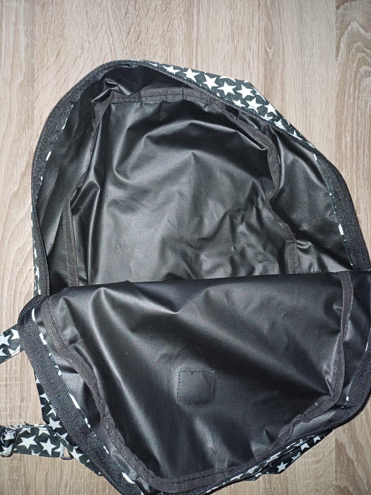 Ruksak v dobrom stave. Nie je látkový, skôr umelina. Bez poškodení.