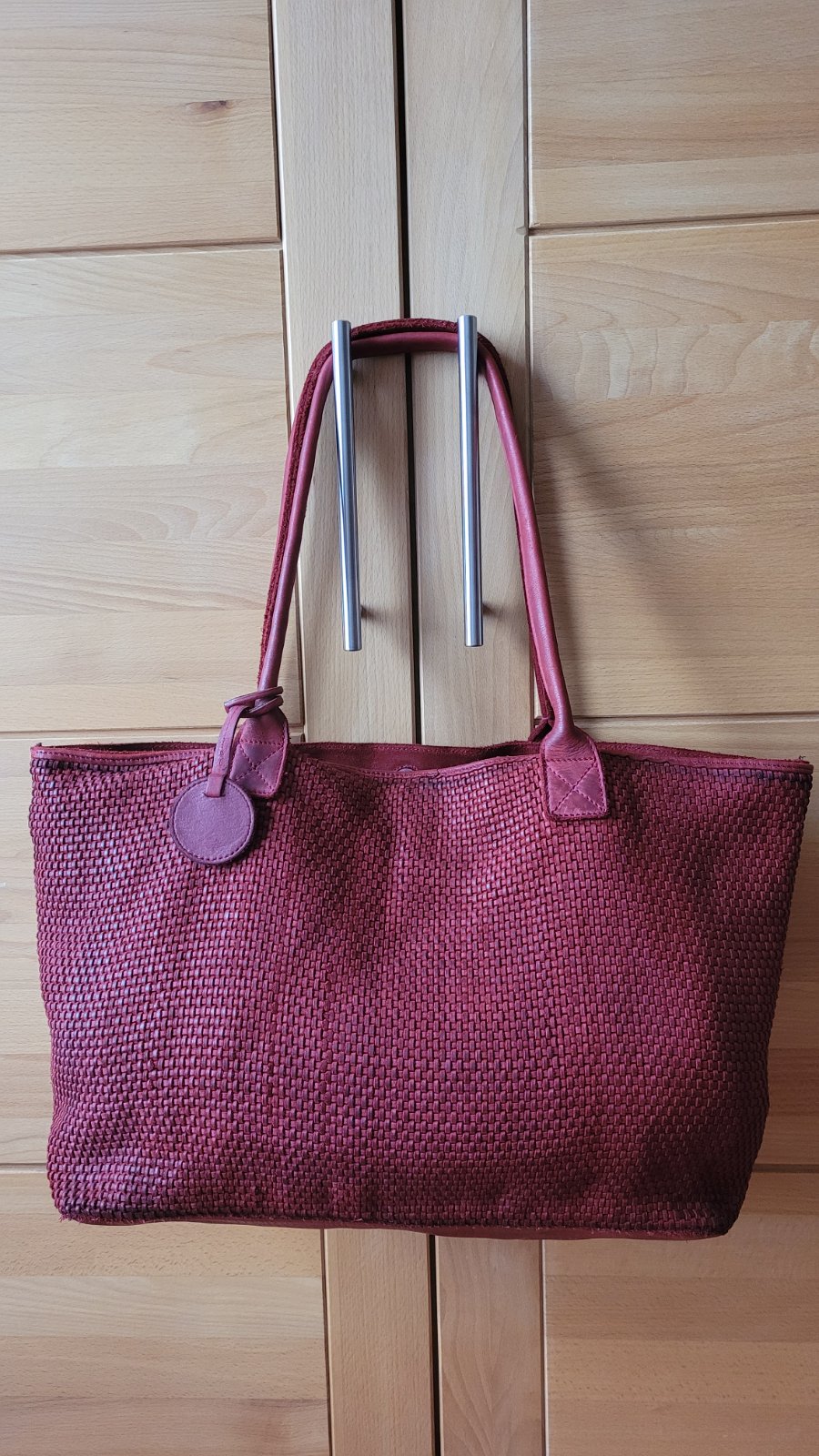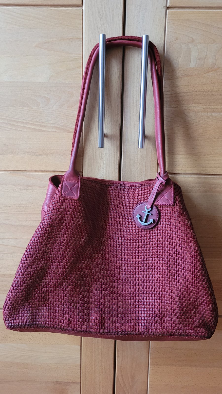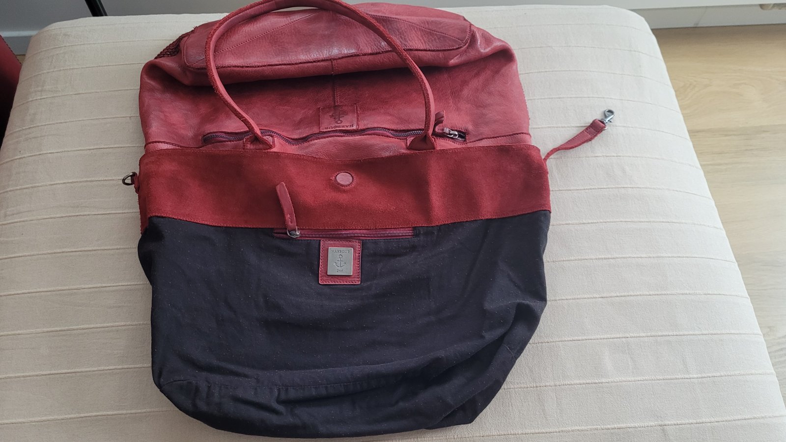 Priestranná kožená kabelka/shopper značky Harbour 2nd, model Grace, hovädzia koža vintage úprava, rozmer 50x30x15cm, málo používaná.Hlavný priestor sa dá zúžiť pomocou karabínky a koženého remienka, čím sa zmení tvar tašky. Kableku možno uzavrieť pomocou magnetu. Na vonkajšej zadnej strane sa nachádza vrecko na zips. Kovanie a zipsy sú vyrobené z kovu s vintage vzhľadom.
