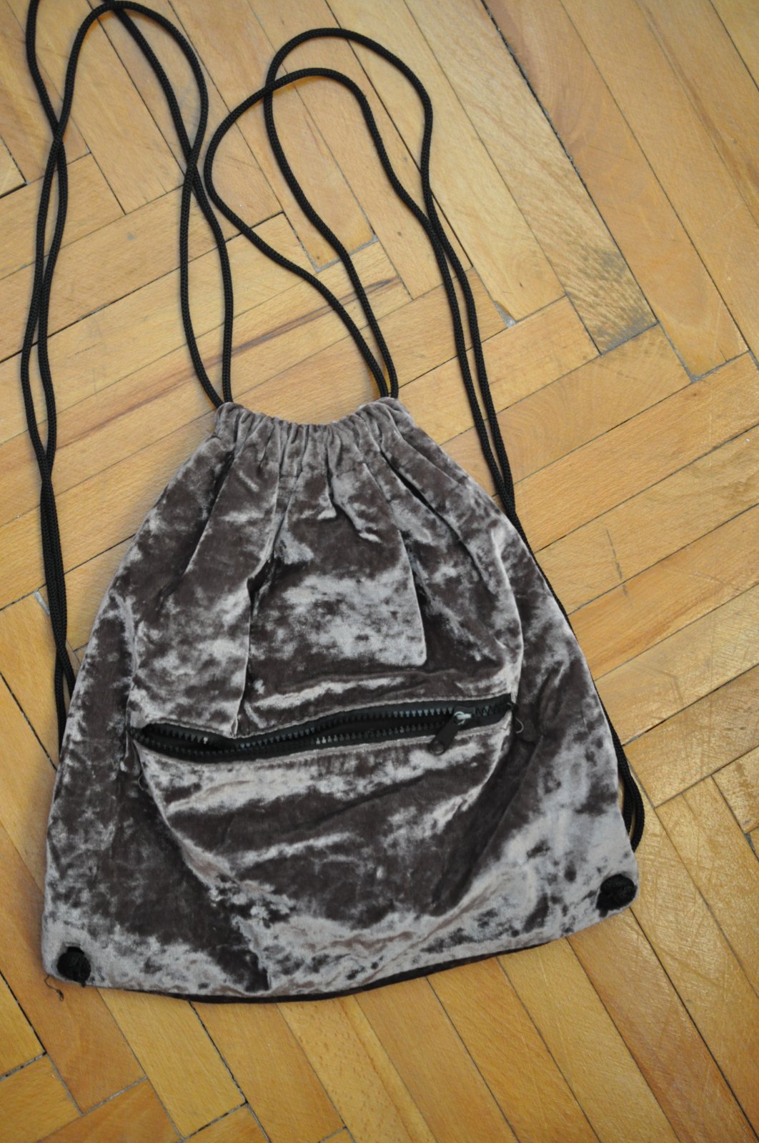 Ruksak v dobrom stave. Šedá lesklá farba s nádychom do fialova. Rozmery cca 27x23x9 cm. Cena: 7€ + poštovné