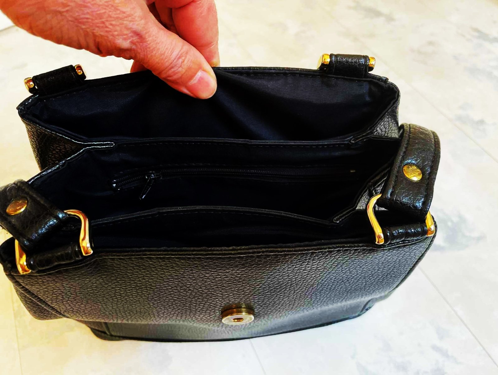 min.nosená kabela s 2 rúčkami a uzatváraním na magnetku,dnu 3 priehradky a kapsička na zips