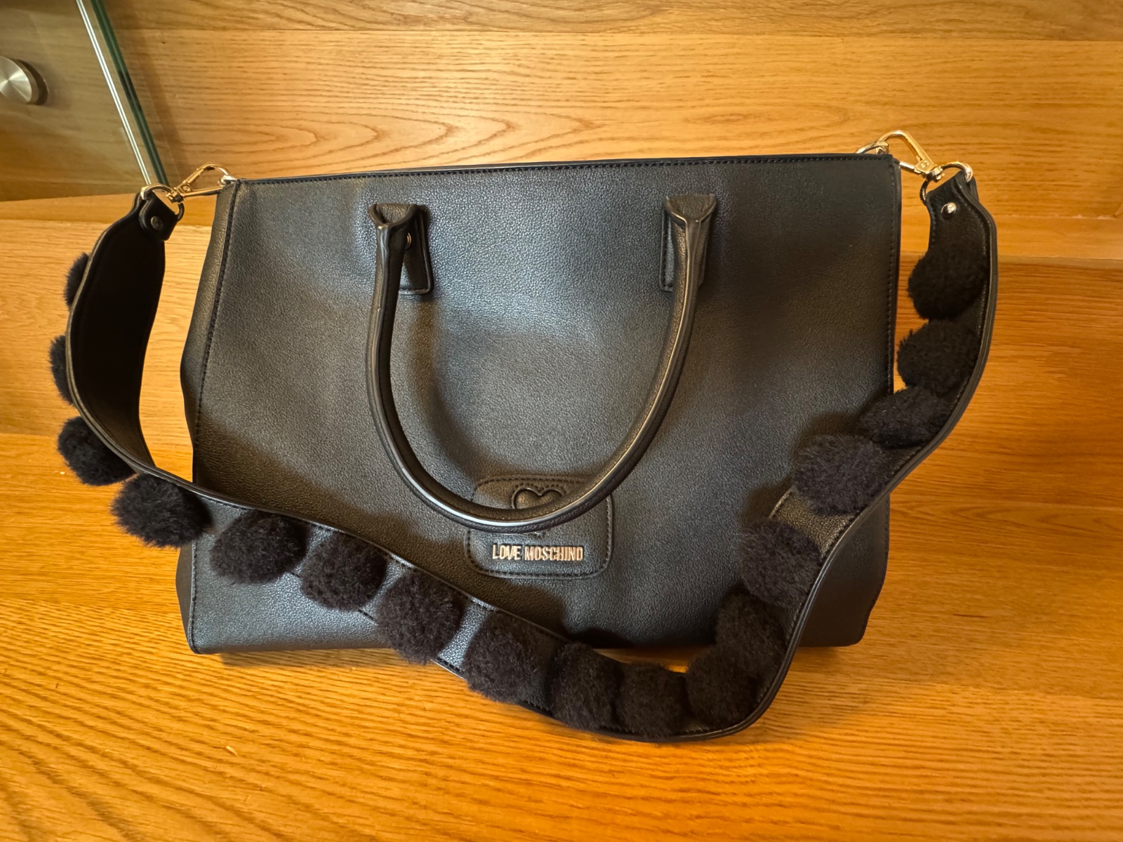Krásna kabelka zn. love moschino. Na odnímateľnom remienku aplikácia chlpatých guličiek. Žiadne poškodenia, žiaľ nevyužijem. PC vysoká.