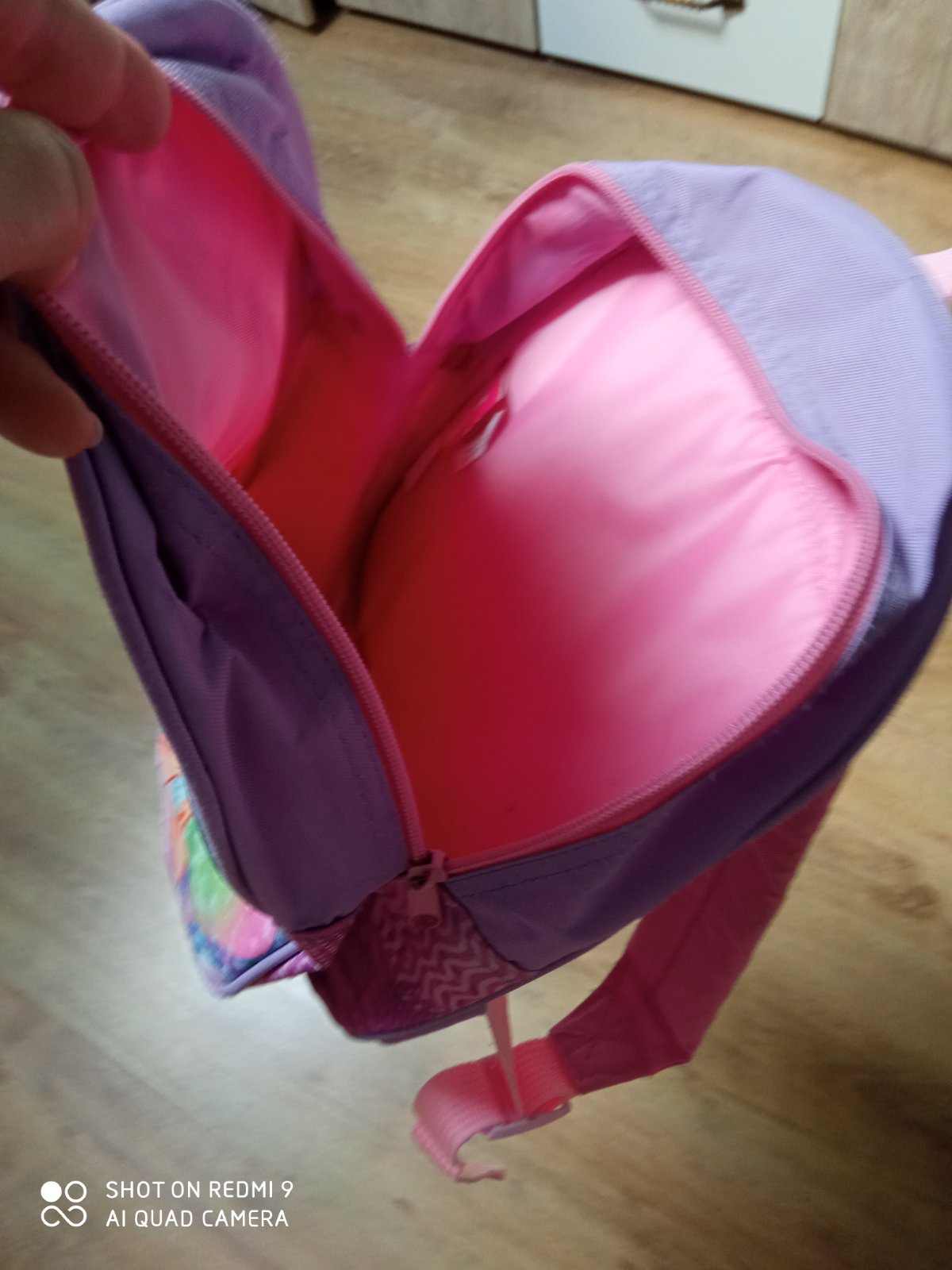Krasna, malo hrana plysova Minnie (bez zavad) sa vozi v batôžku na chrbte do skolky 😍 Ruksacik noseny, zips funkcny, nie je roztrhany, ramienka funkcne