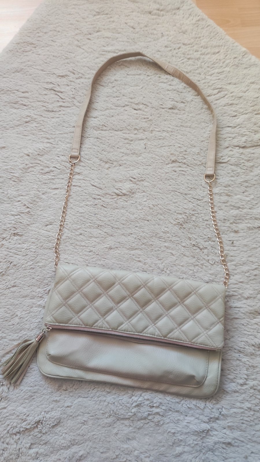 Predám túto dámsku béžovú listovú kabelku. Je nosena, nemá žiadne poškodenia. Akurát farba je už trošku vyleznuta. Vidno to len pri veľmi detailnom pohľade, nedá sa to ani odfotiť. Zohľadnené v cene. Rozmery cca 36 x 24 CM. Cena je 3€ + posta