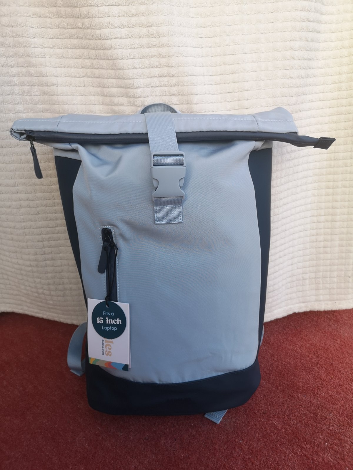 Navyše jeho elegantný dizajn s rolovacím vrchom dodáva vášmu outfitu jedinečný vzhľad. V svetlomodrom prevedení.