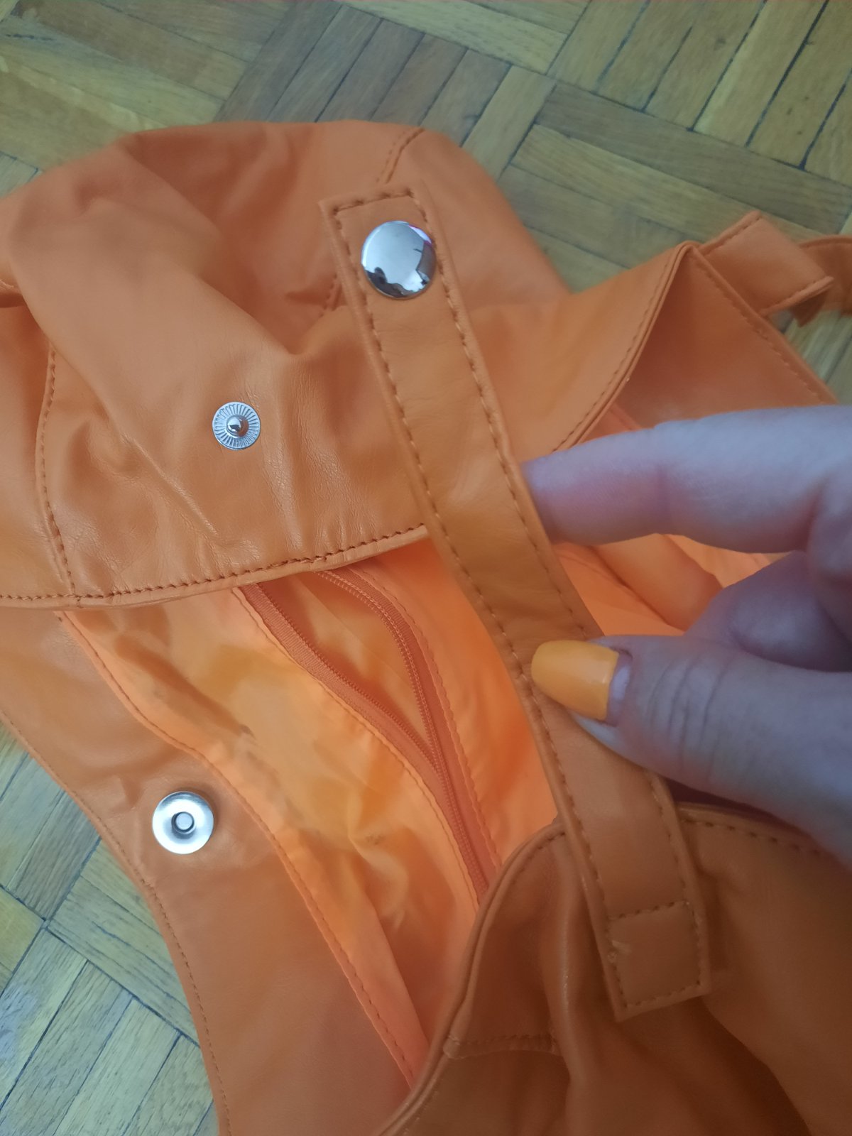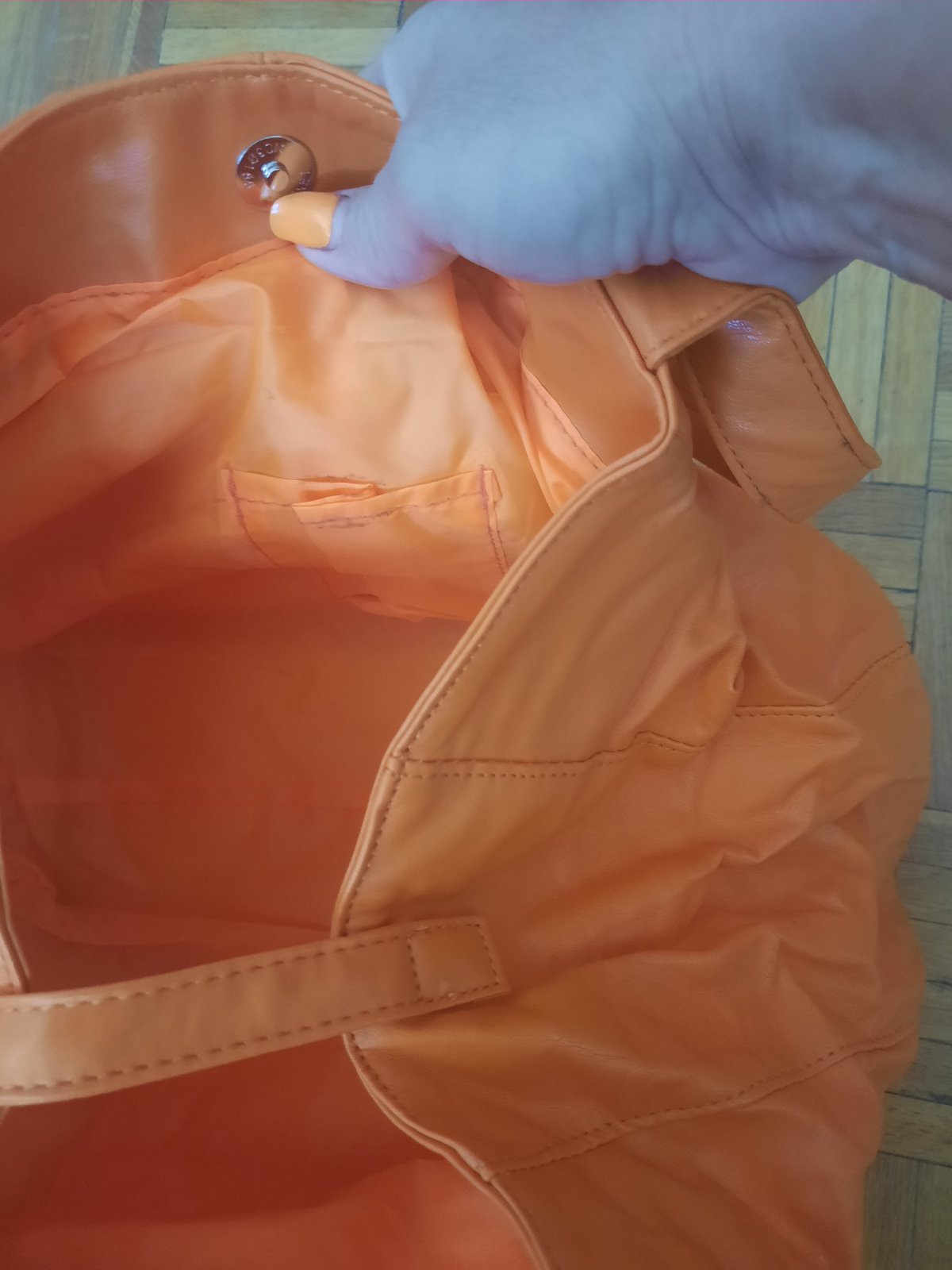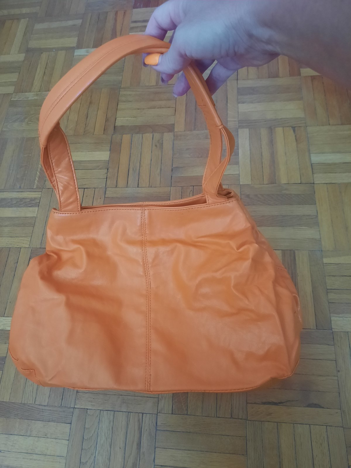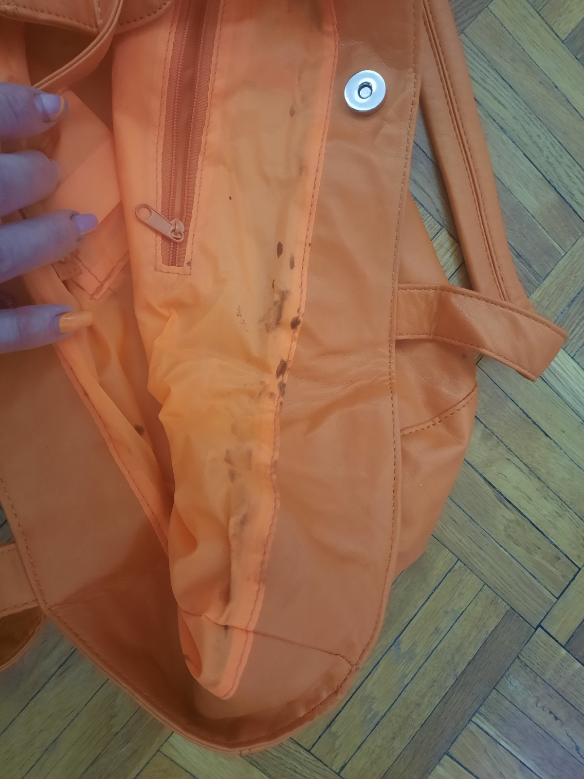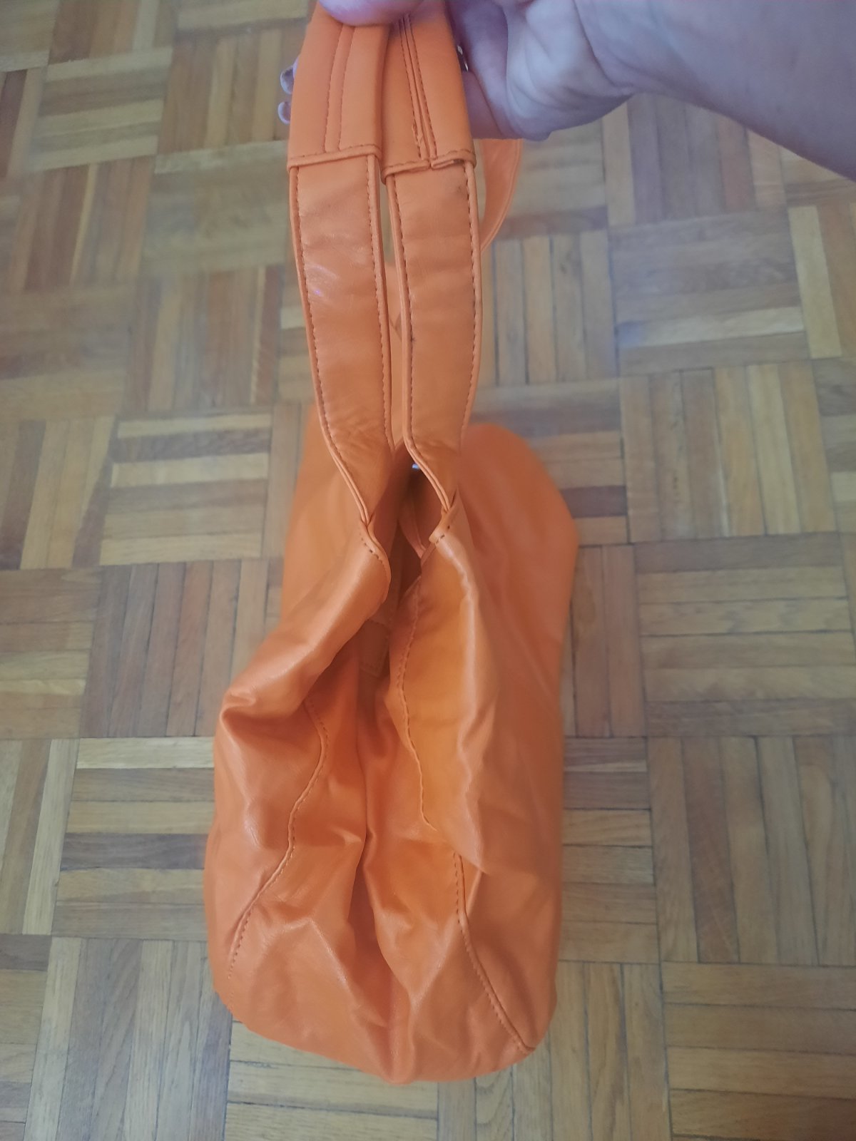 Veľmi pekná kabelka do ruky aj na rameno. Bola max.1x používaná. Vo vnútri je malý priečinok na zips. Zvnútra som našla hnedé fľaky (ale zvonka vôbec nevidno). Super mäkký materiál.