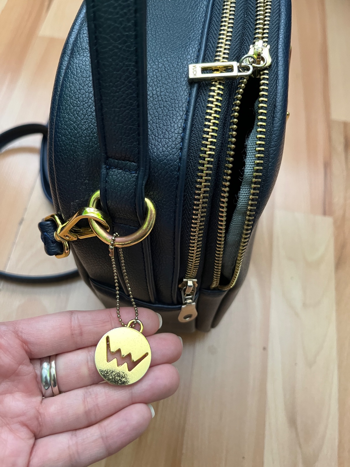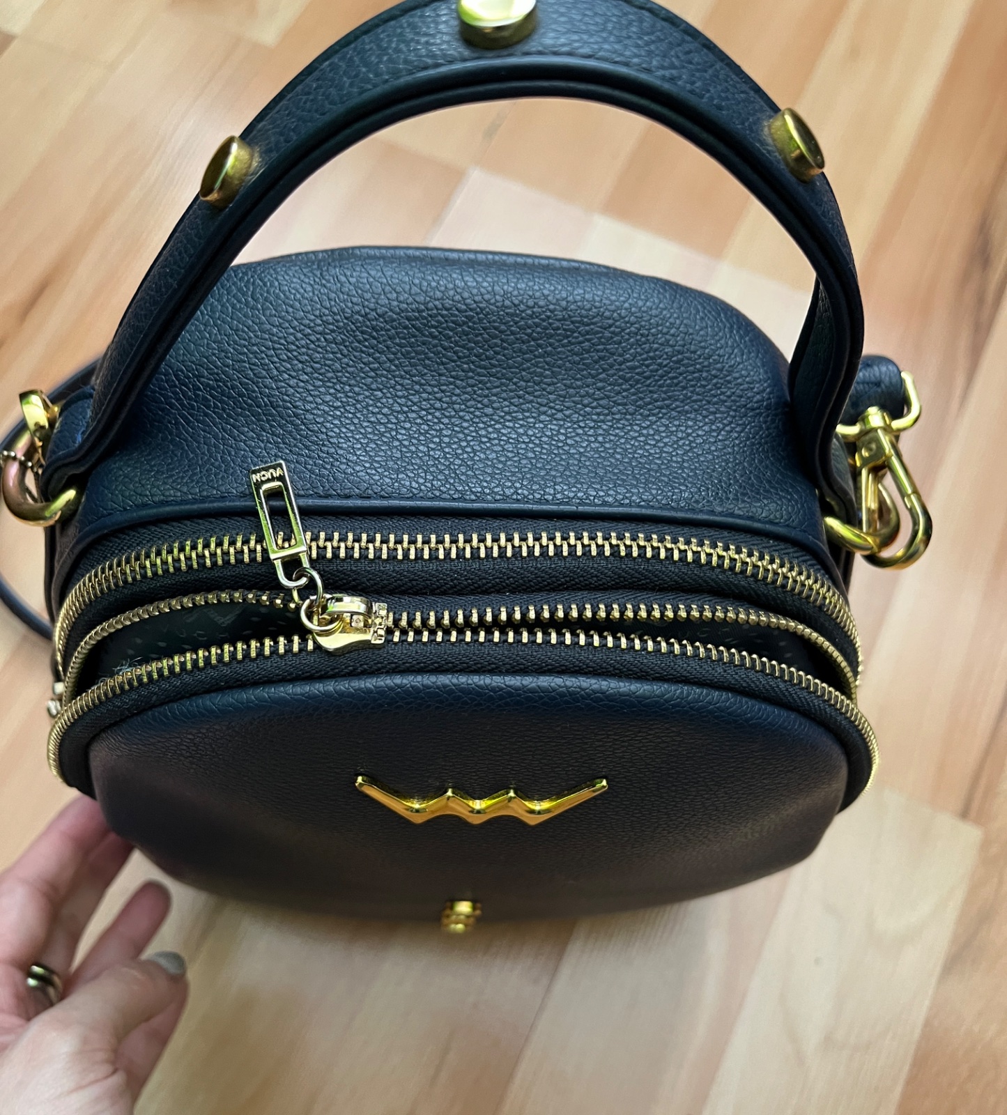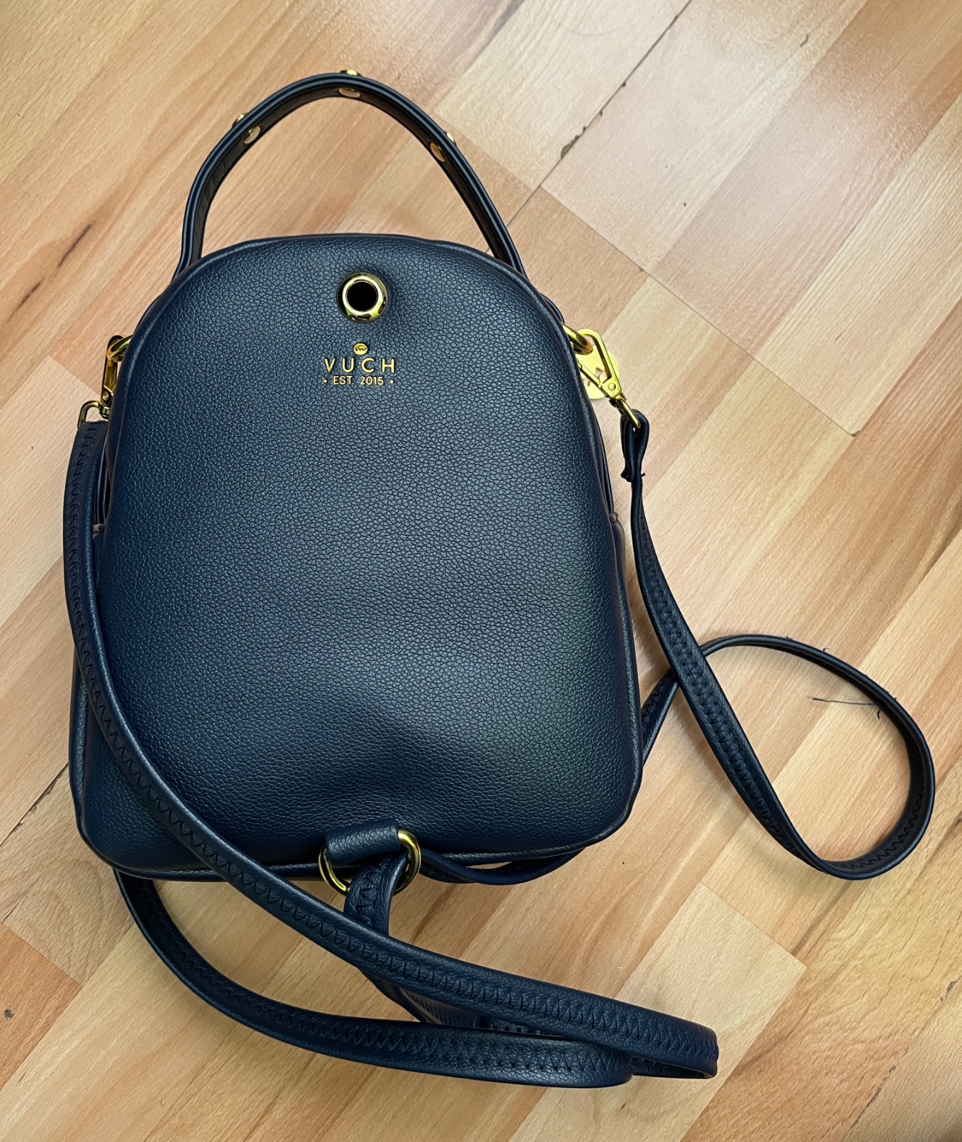 Otvor na prevlečenie slúchadiel..Nastaviteľné ramenné popruhy..Je možné nosiť niekoľkými spôsobmi.. je krásny tmavomodrý