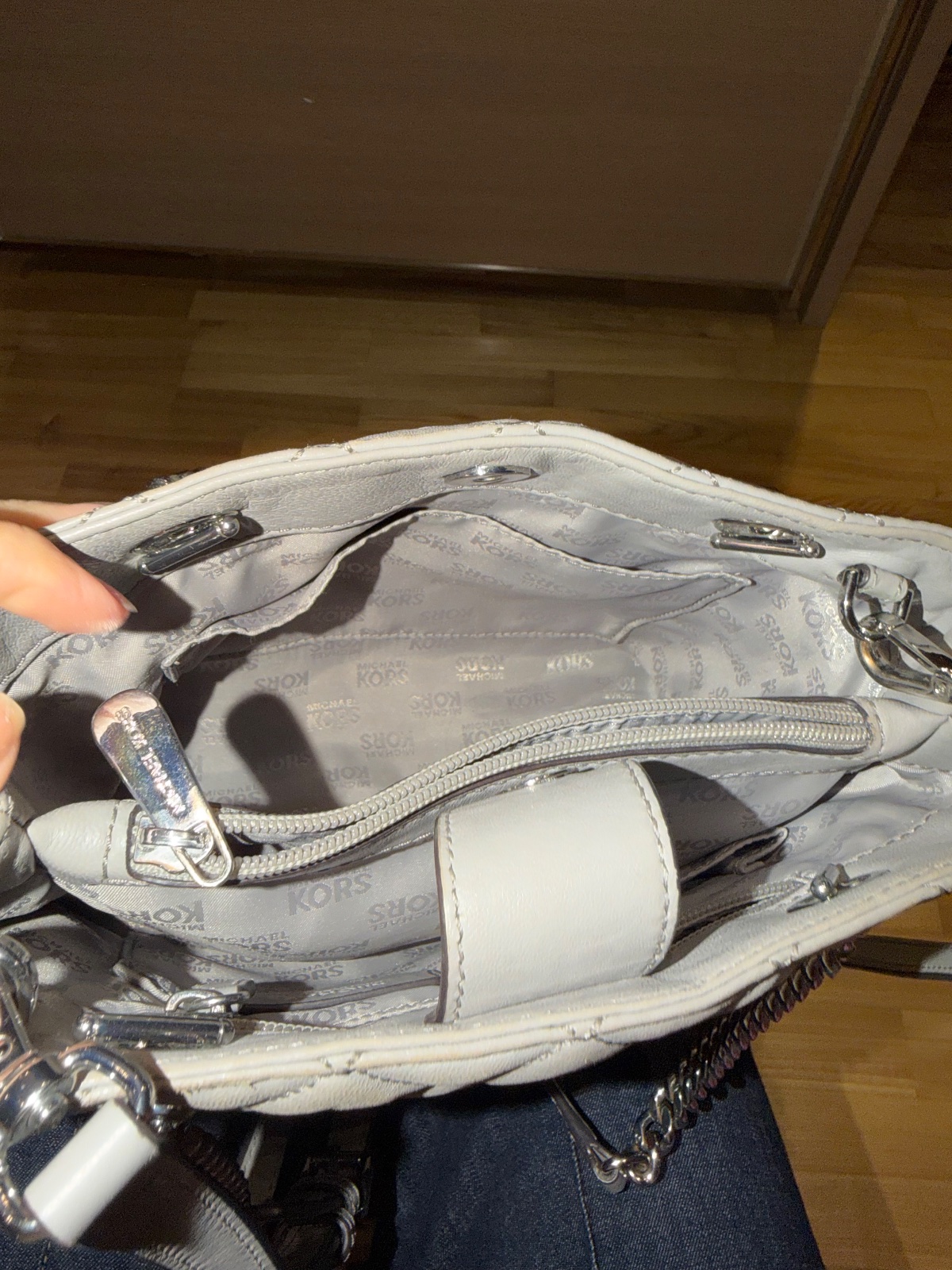 Predávam krásnu, originálnu kabelku Michael Kors vo svetlosivej farbe – elegantná, štýlová a pritom praktická.