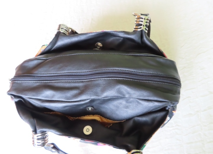 kabelka má hlavný priečinok na zips, po bokoch veľké priečinky na magnetický klipsy.