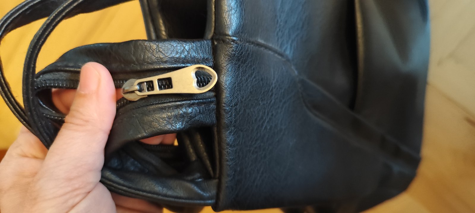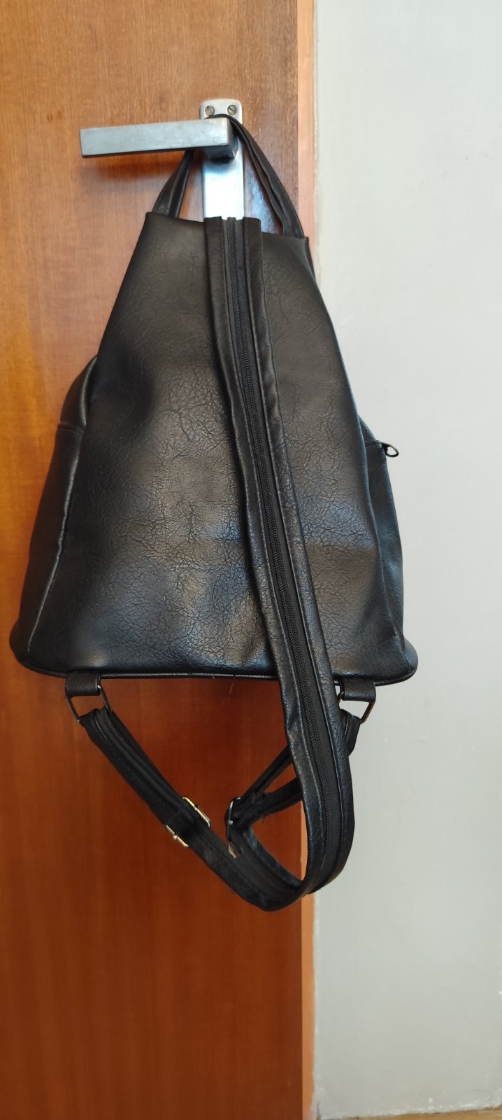 Predam elegantny kozenkovy ruksak. Da sa dat na jedno ramienko, a ked rozzipsujete, tak z neho mate dve ramienka. Mozte ho nosit aj v ruke, hore je usko. Vpredu je jedna priehradka a ked sa rozzipsuje, tak dnu je jeden velky priestor a zvnutra malicke priehradky na drobnosti ako v beznych kabelkach. Pouzila som ho asi len raz, nevyuzijem ho, preto posuvam.