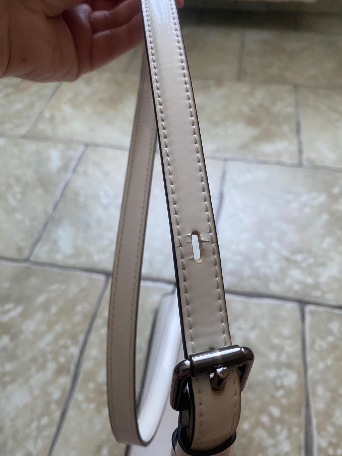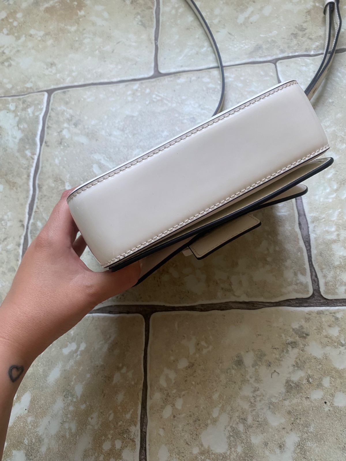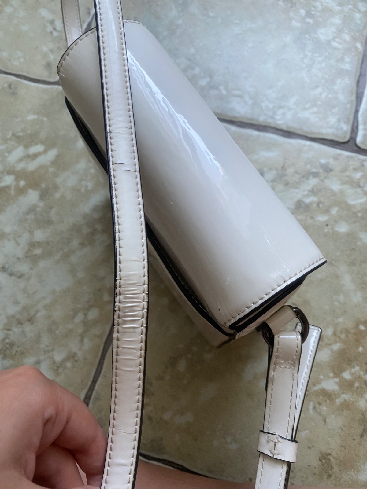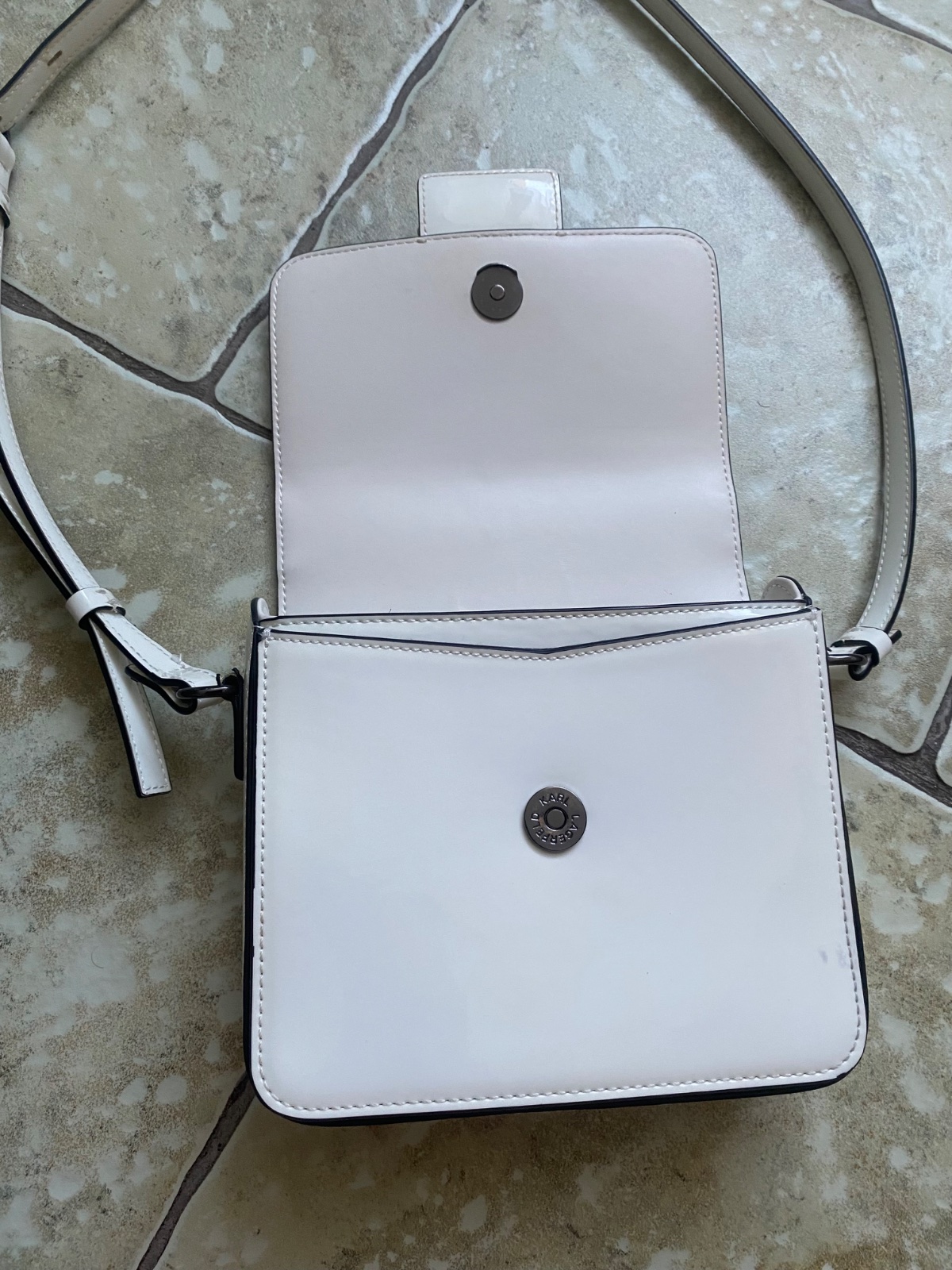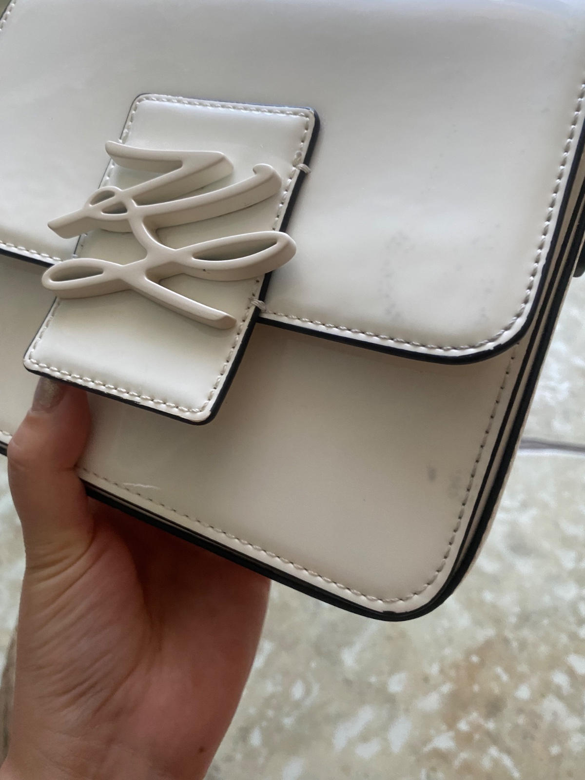V ponuke biela, lesklá crossbody kabelka Karl Lagerfeld, model 211W3011. Kúpená tu na inom predajnom portáli ako nosená, dobrý stav, nakoniec som sa rozhodla posunúť ju ďalej. Krásny model, super veľkosť, aby sa zmestilo všetko potrebné, ľahko kombinovateľná - odporúčam 🩷. POZOR !!! - kabelka má chybičky, ľahké ušpinenie vpredu a zopár malých praskliniek, všetko som sa snažila nafotiť.
