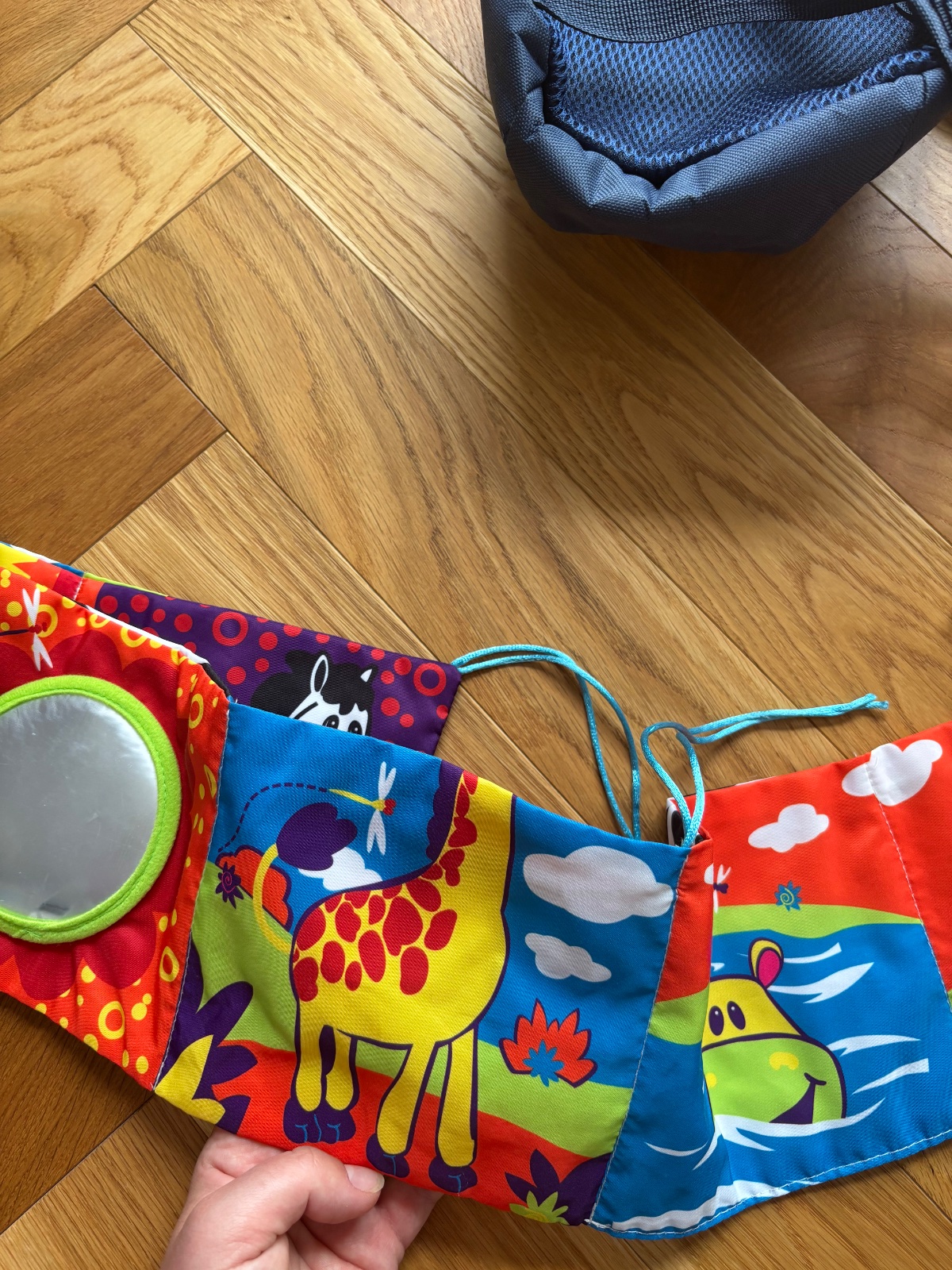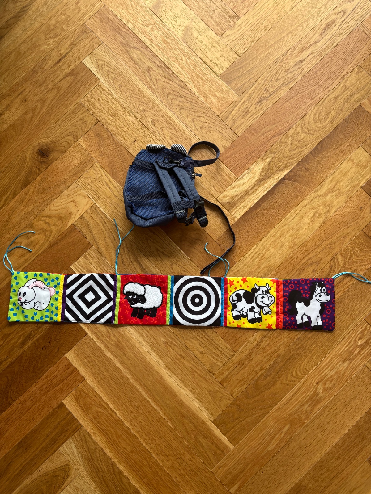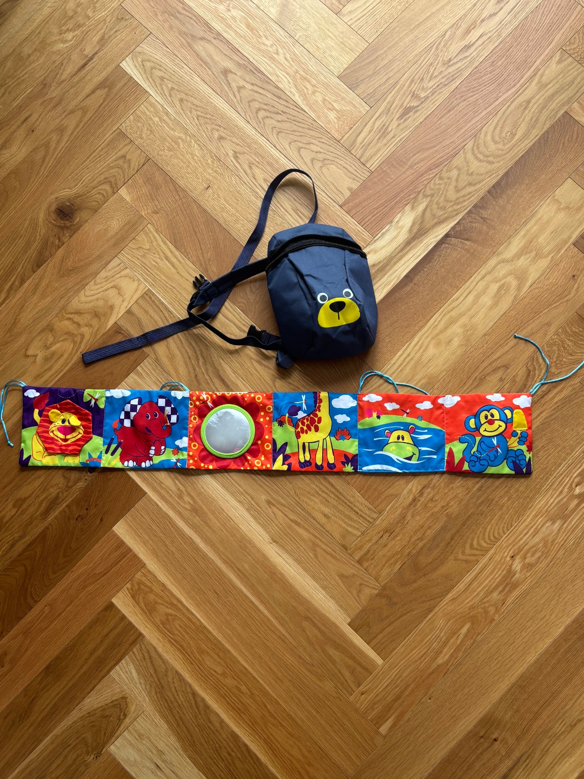 Mini mantinel na postielku,je obojstranny,chyba hlava zirafy,rozmer 92x15m