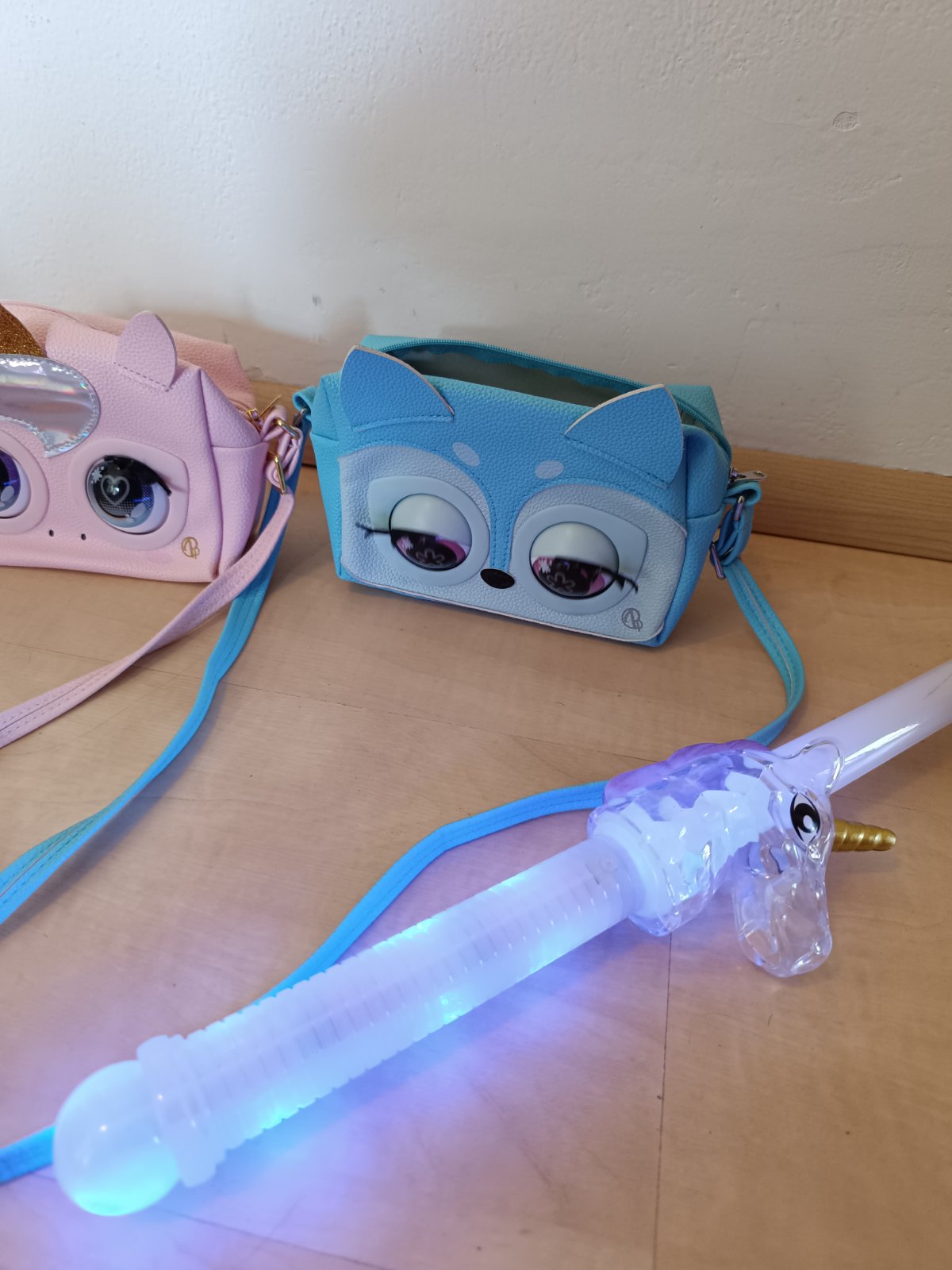 Kabelka modrá a ružová, mrkajuca, perfektny stav skoro ako nová