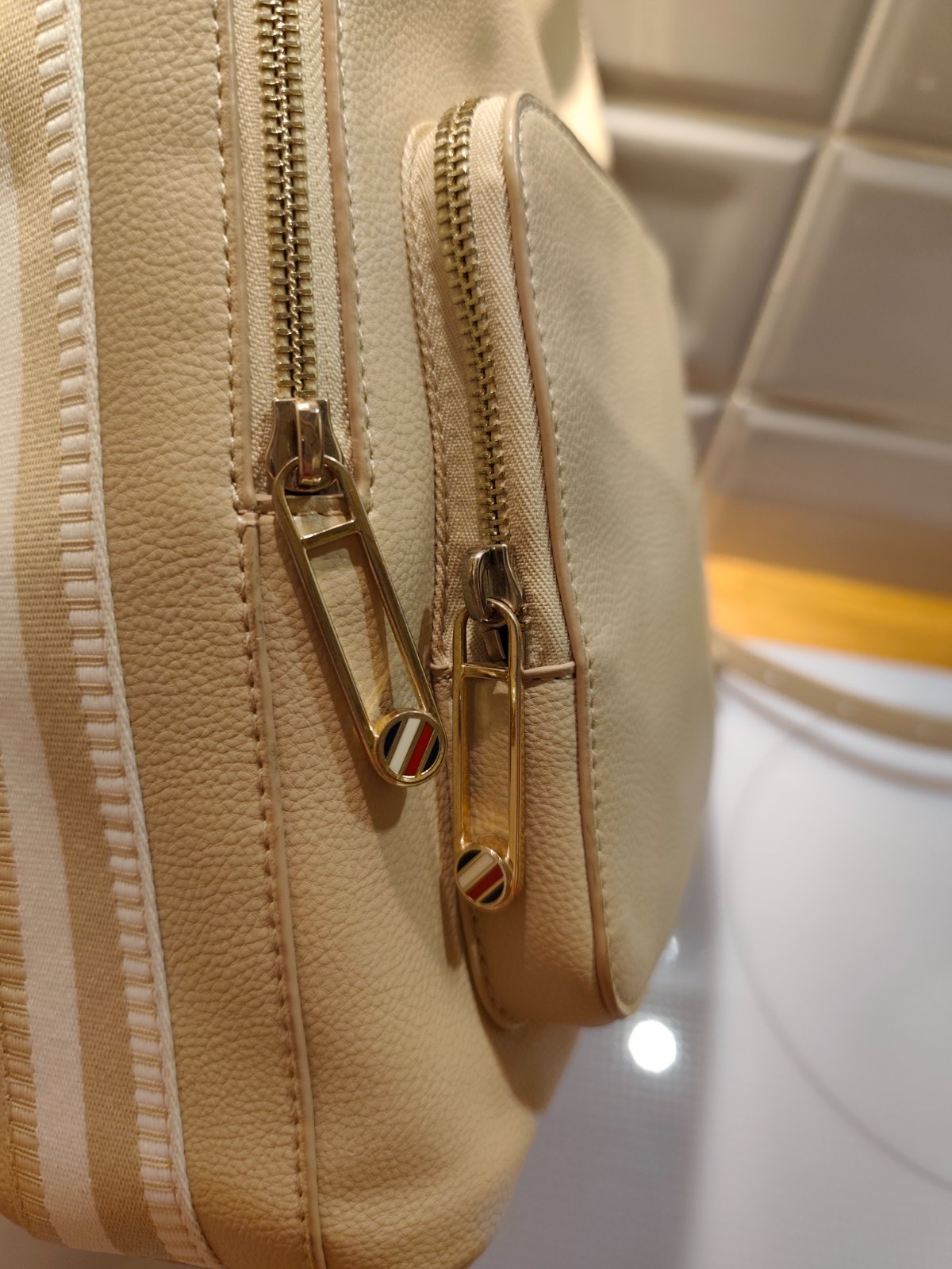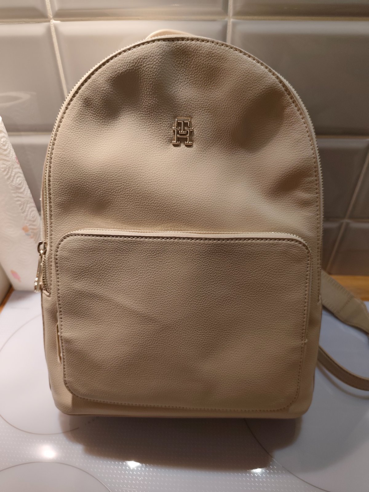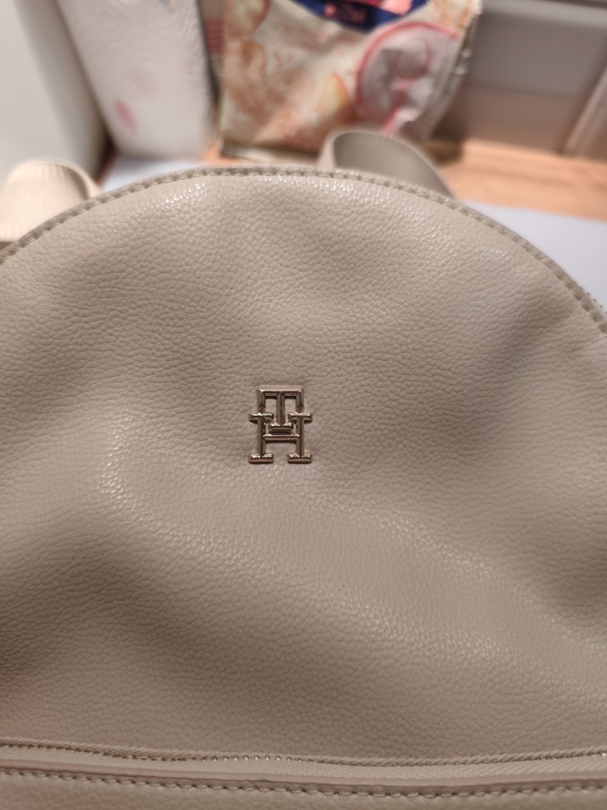 Béžový kožený ruksak Tommy Hilfiger ako nový