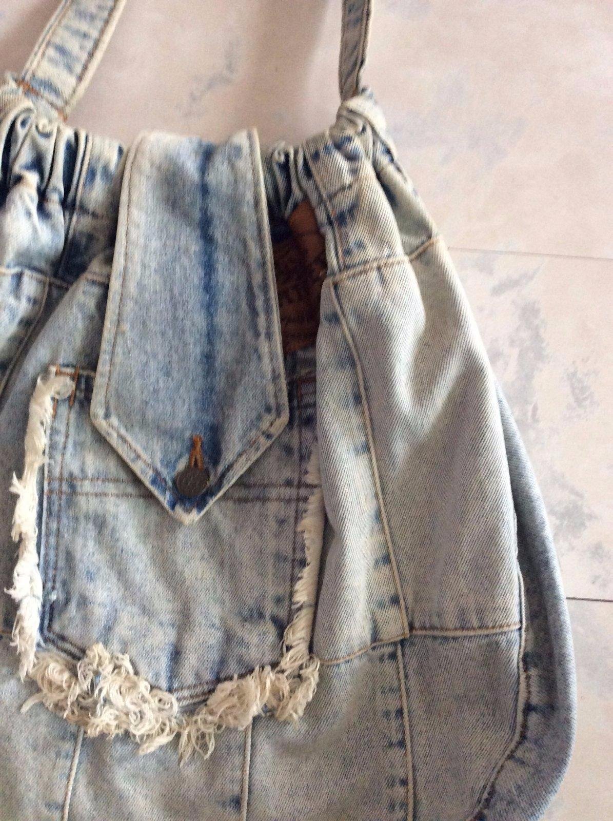 zaujímavý priestranný a ľahúčky riflový vak,na vrchu gunička a príklopka na zapínanie