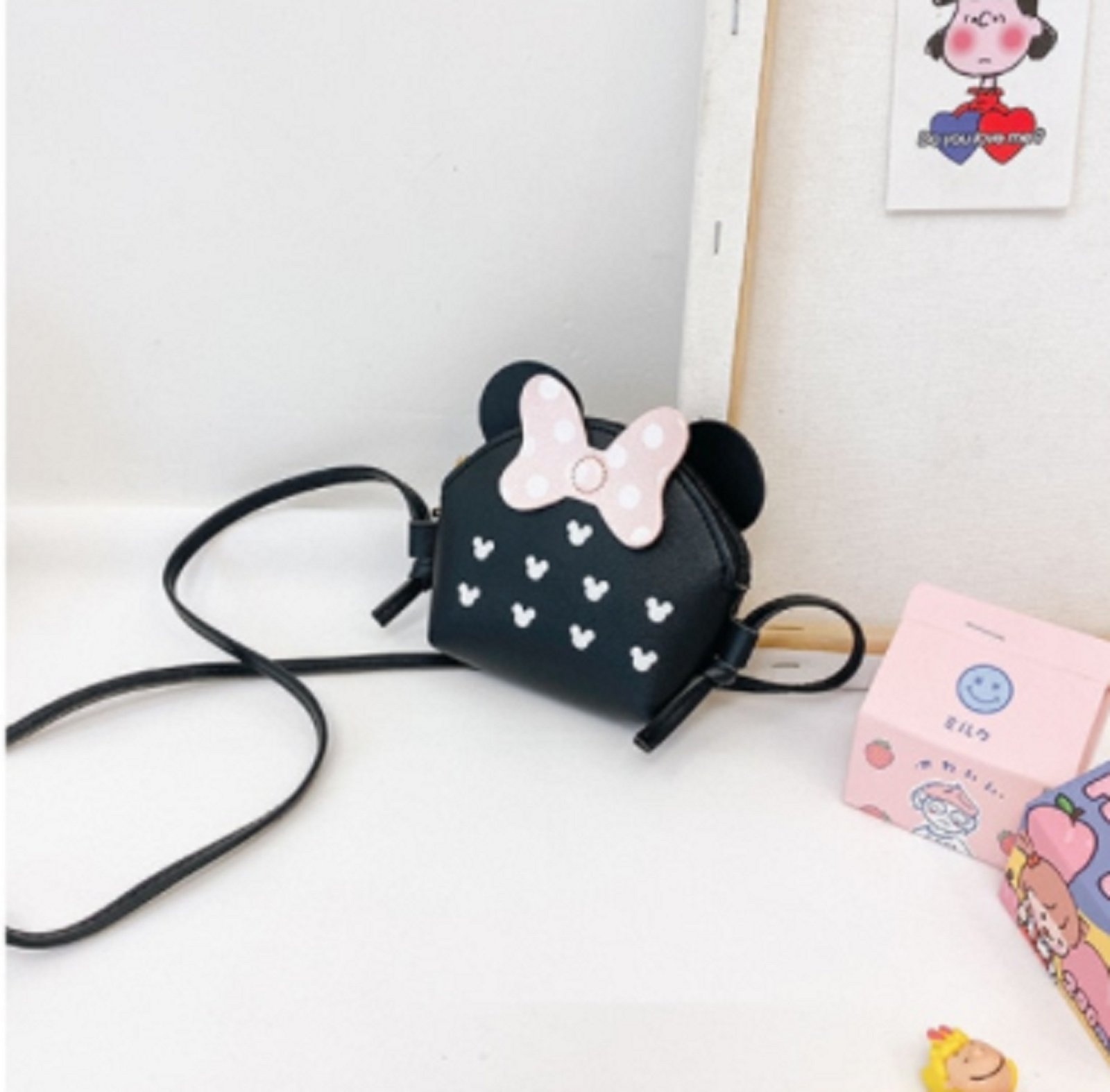 Dievčenská koženková kabelka MinnieS na jedno rameno s motívom Minnie, do ktorej sa malým slečinkám zmestí všetko čo potrebujú keď vyrazia na prechádzku, alebo mesta.