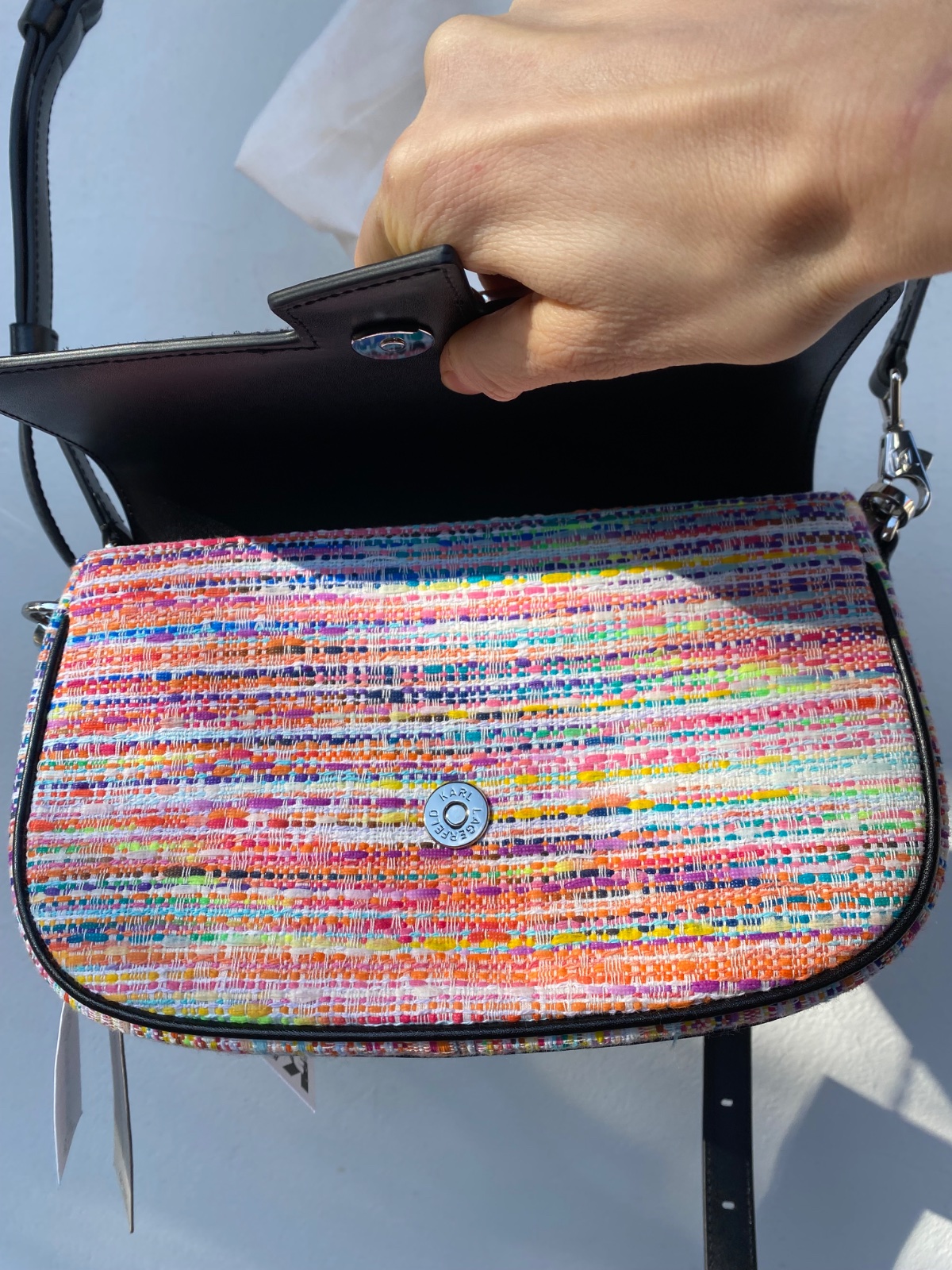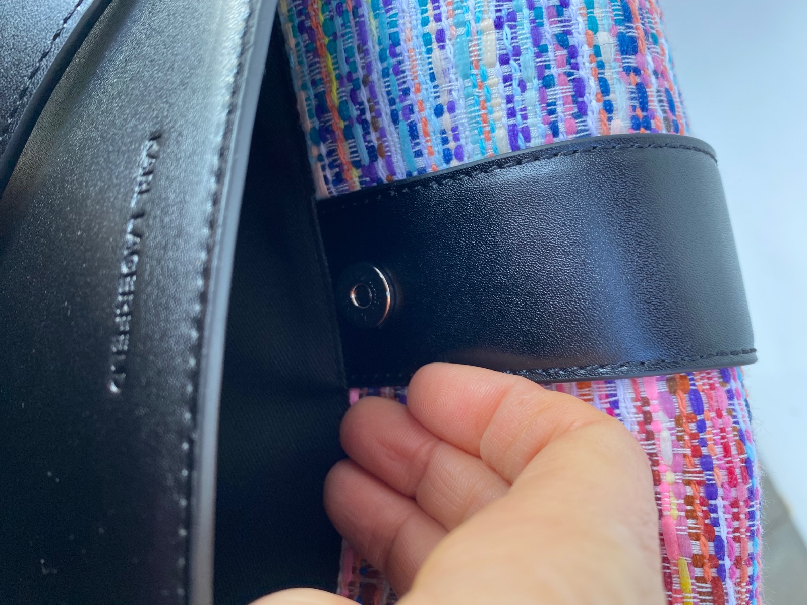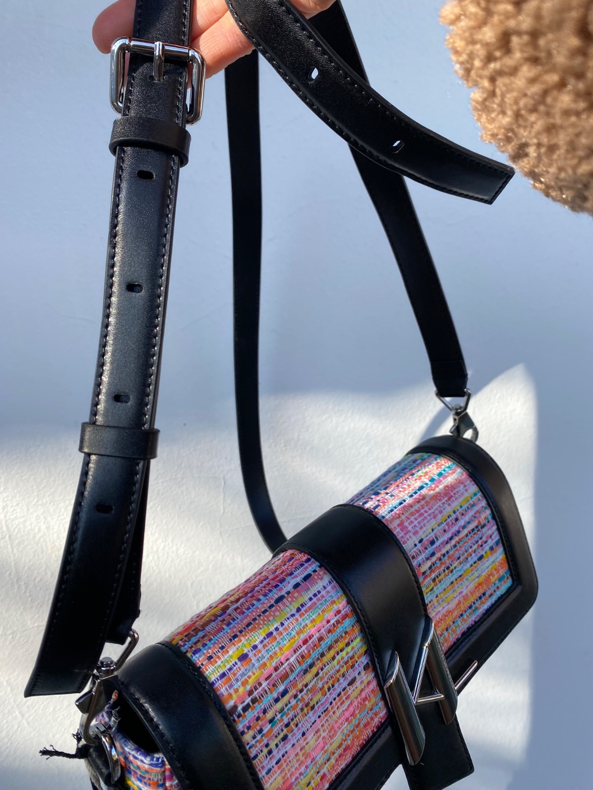 Má 2 pútka - na nosenie na ramene aj cez stred tela ako crossbody (naraz môže byť pripojený iba 1 popruh, sú dĺžkovo nastaviteľné -3 dierky )