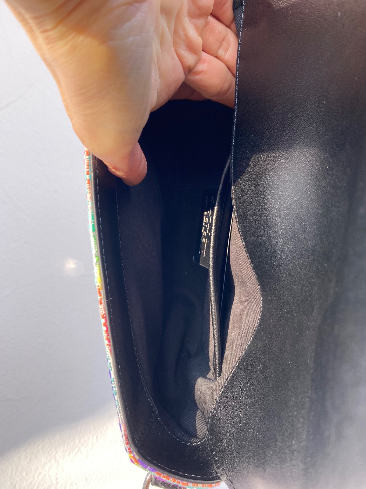 Kovové detaily v striebornom prevedení, látková buklé časť je viacfaberná / multifarebná