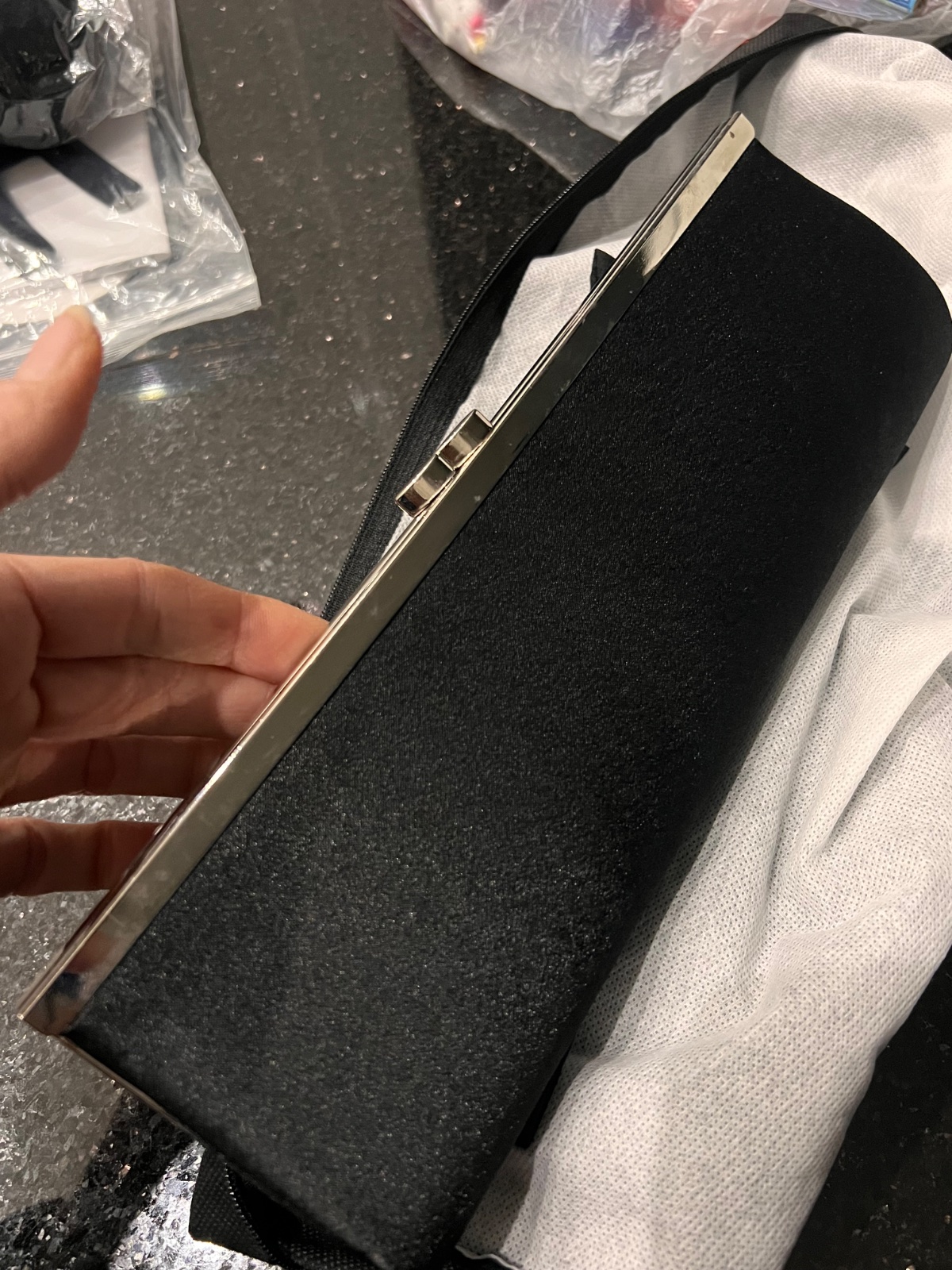 Saténový clutch s odnímateľnou retiazkou
