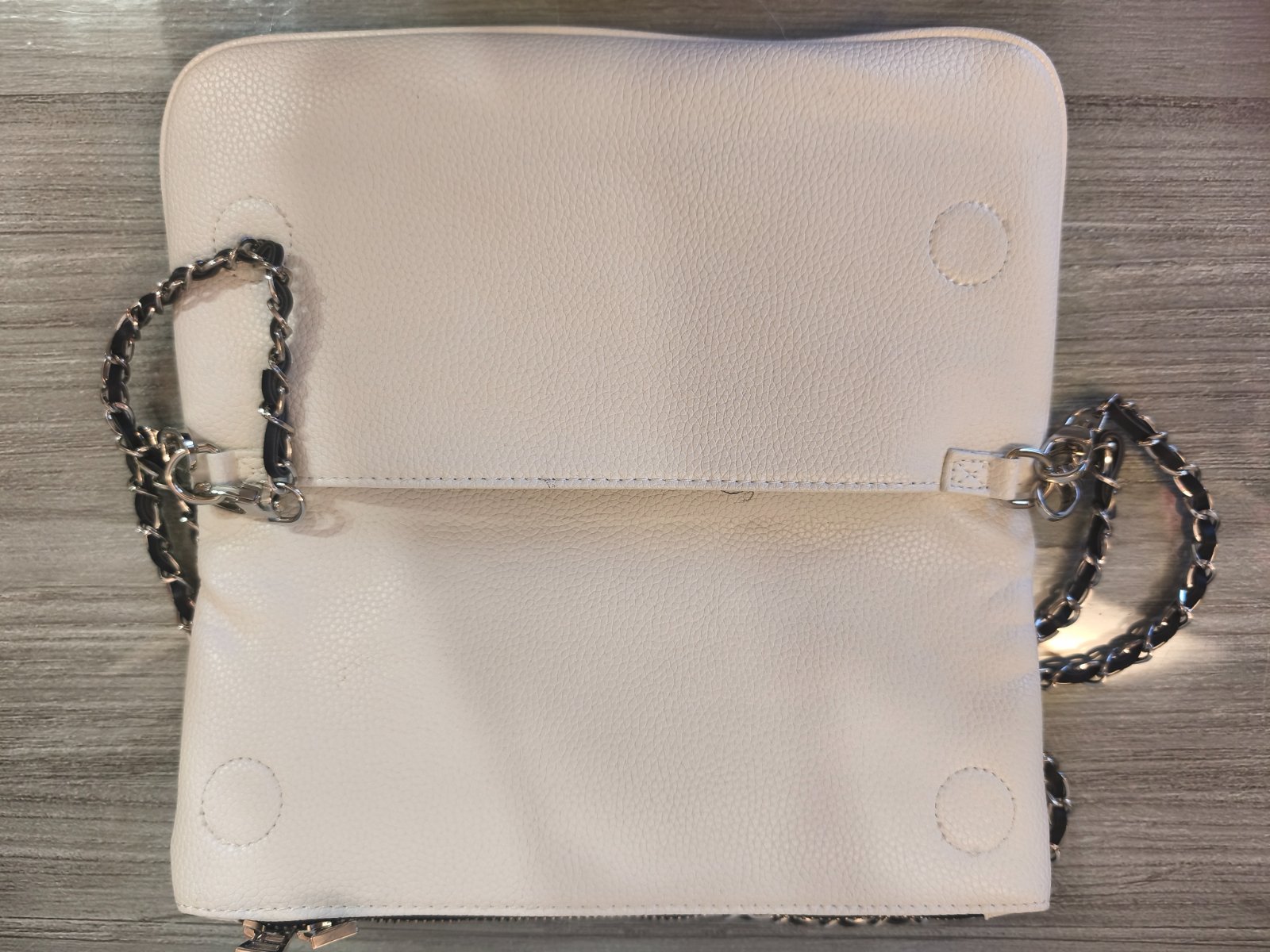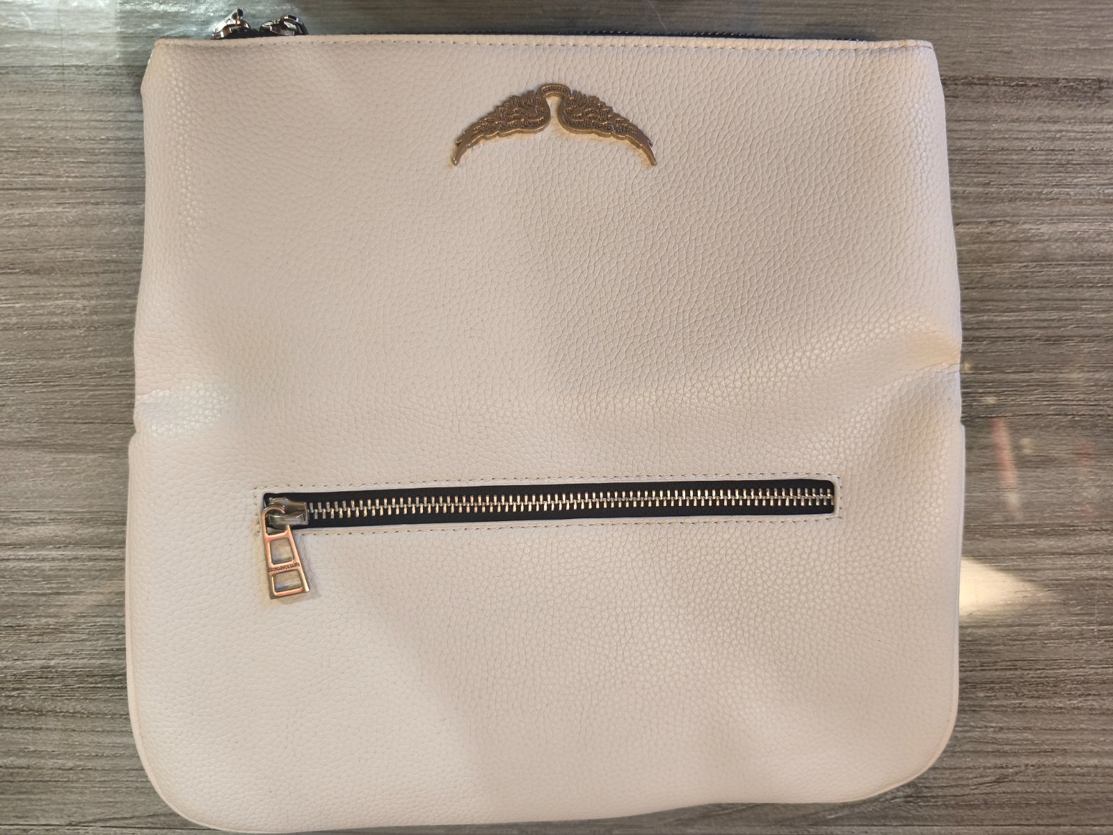 Väčšia je ZADIG VOLTAIRE, ma zatváranie na 2 magnety, 2 vonkajšie priehradky na zips a jednu vnútornú priehradku bez zipsu. Farba: biela
