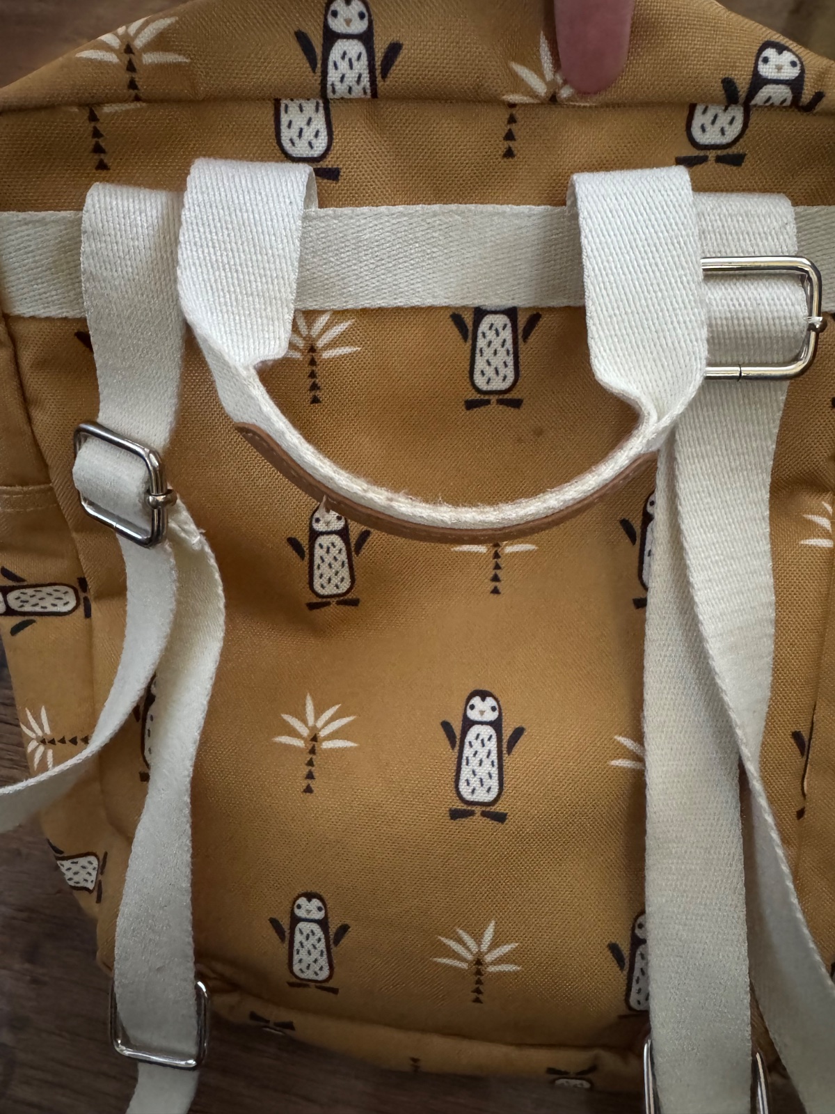 Ponúkam krásny detský ruksačik s motívom paliem a tučniakov v horčicovej farbe. Je značky Fresk a bol v používanom, ale naďalej vo veľmi peknom stave až na zašpinenia ale hlavne z vnútornej strany a vypísané meno zvnútra. Má dva prečinky. V ponuke mám aj klobúčik na 1-2roky rovnakej edície Fresk. Vhodný aj pre dievča aj pre chlapca. Poštovné podľa taríf.
