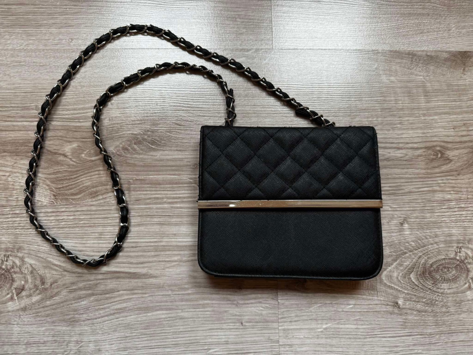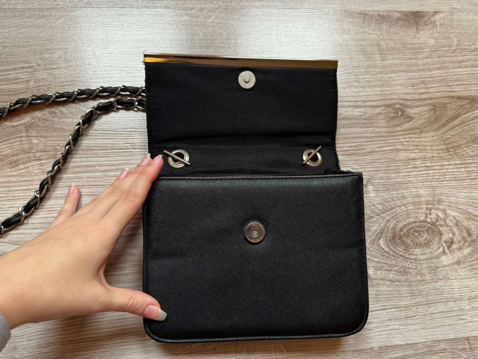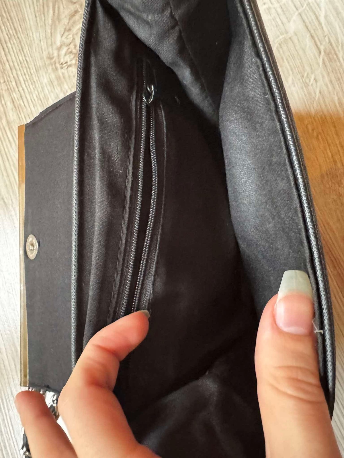 farba: jedna strana biela, druhá čierna so strieborným kovaním odopínateľný dĺžkovo nastaviteľný dlhý popruh + uško do ruky veľmi štýlový kúsok priemer kruhu 20 cm, hrúbka 9 cm materiál: neprav...