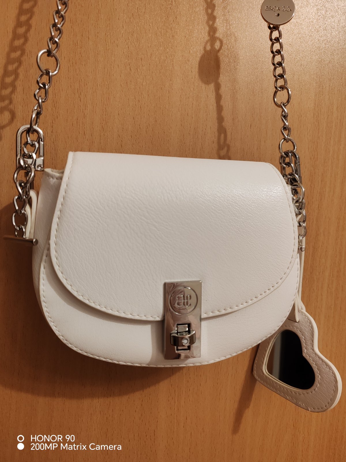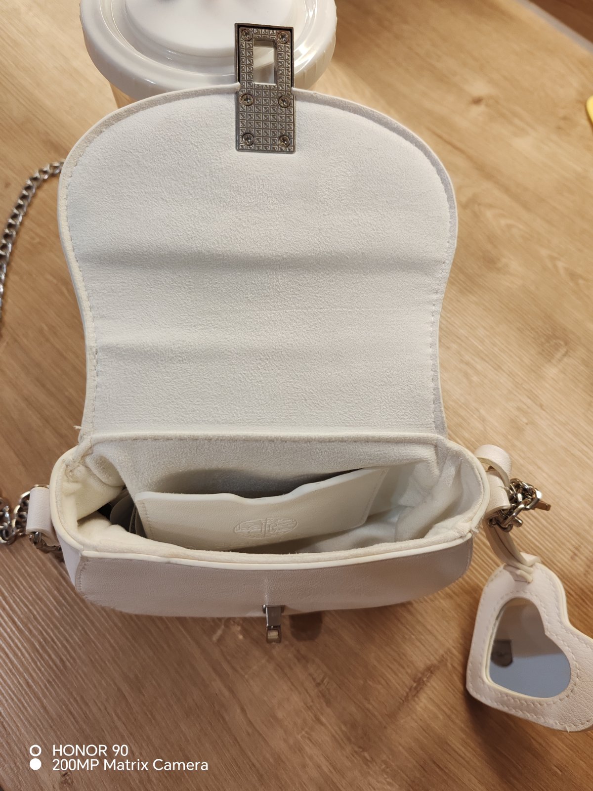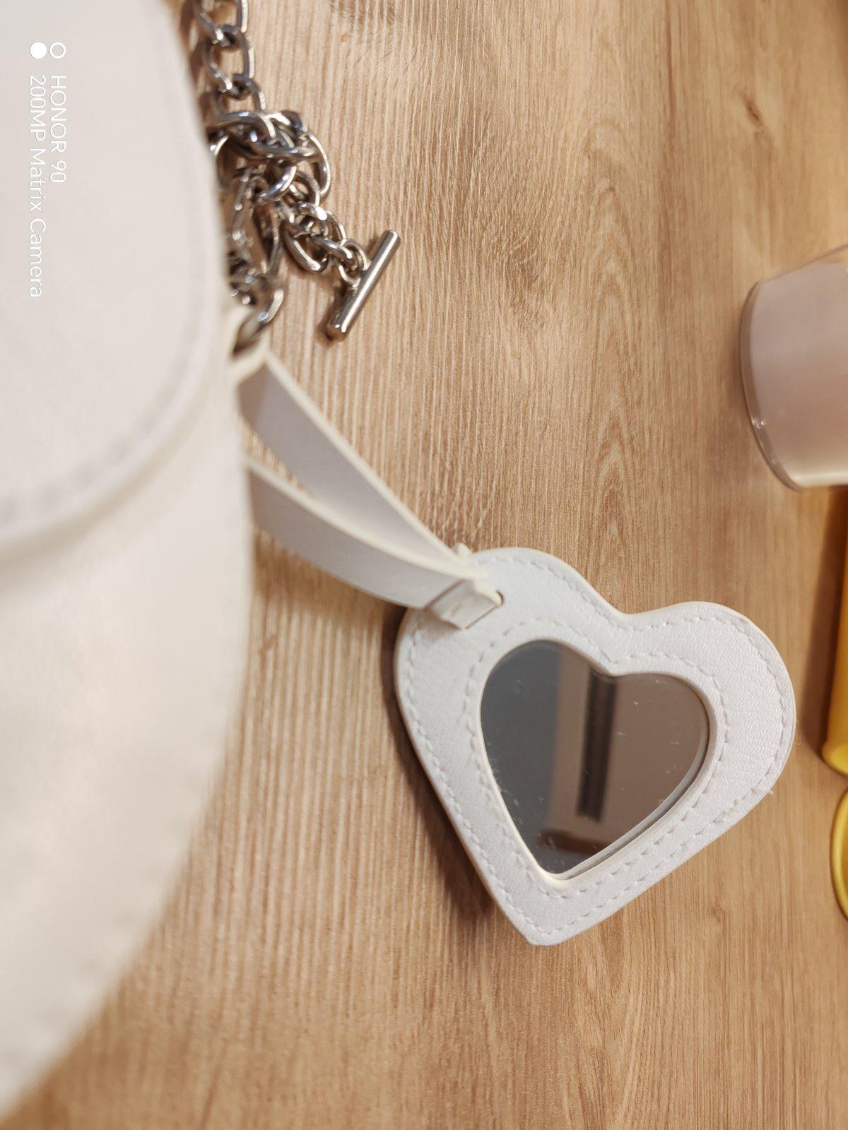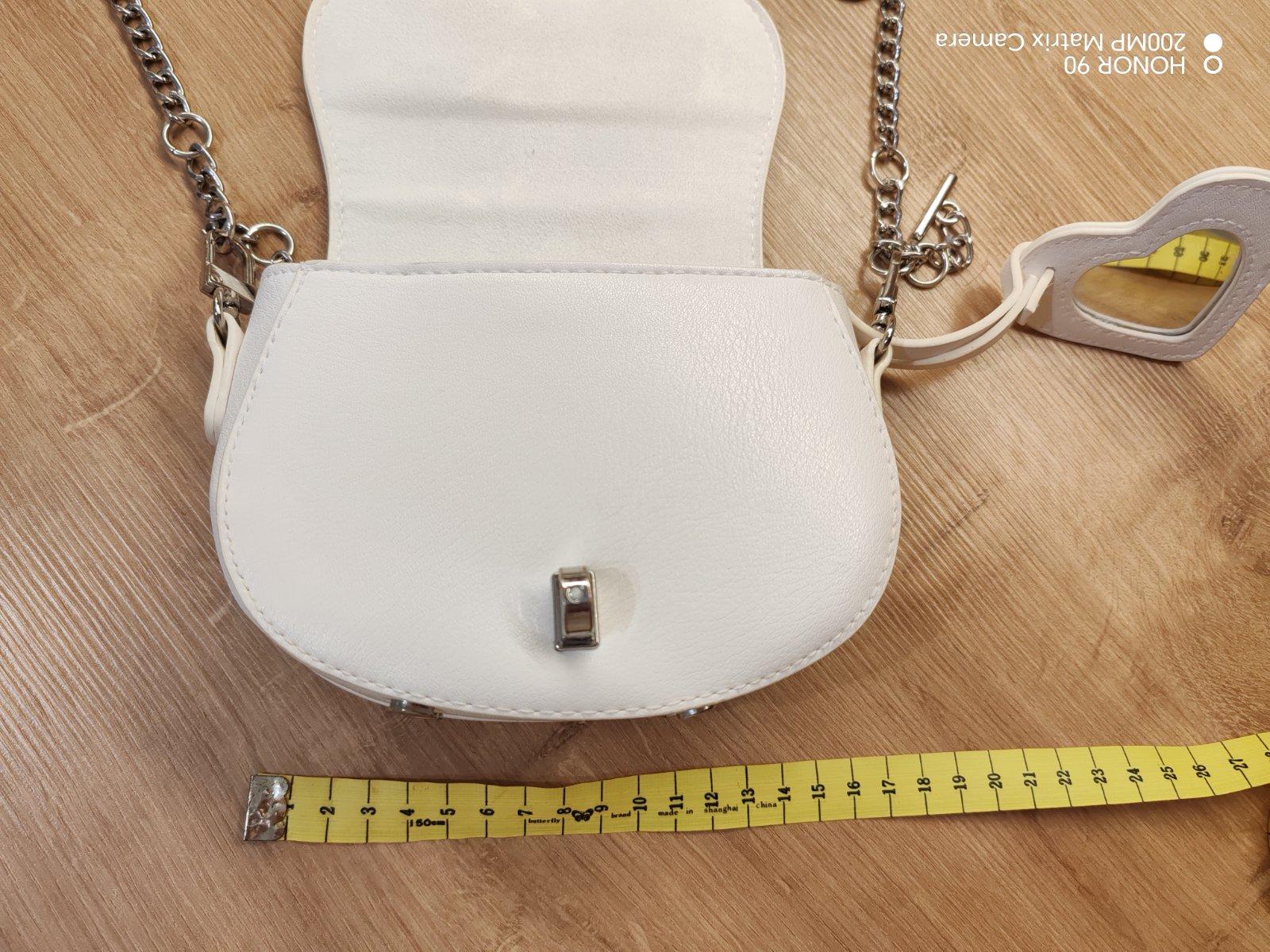 Žiadne poškodenia, dĺžka ramienka sa dá prispôsobiť. V srdiečku je zrkadlo. Rozmery sú na fotkách. Odporúčam, je ozaj výnimočná 🥰.