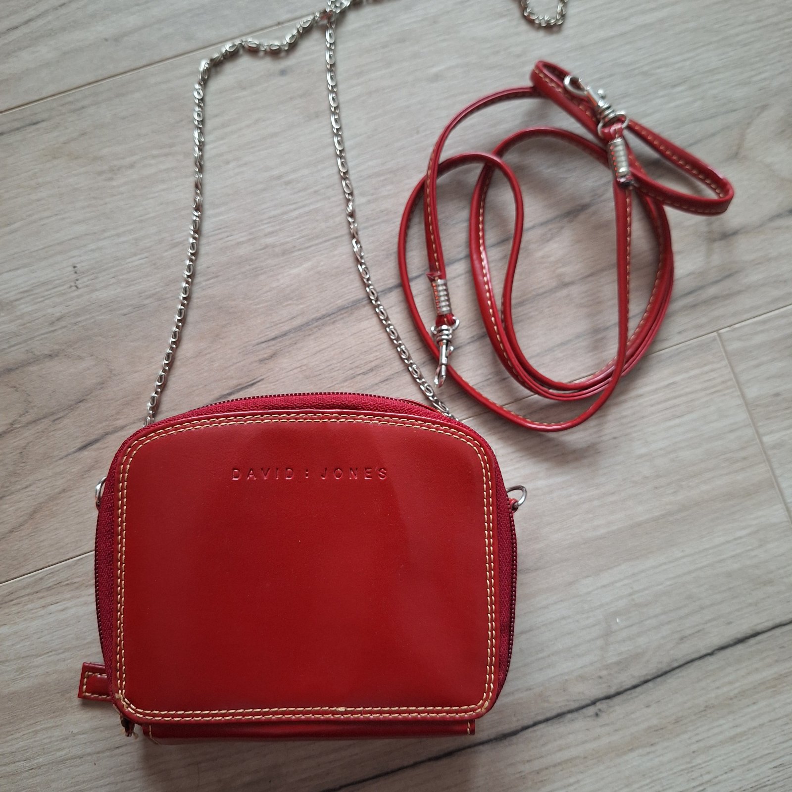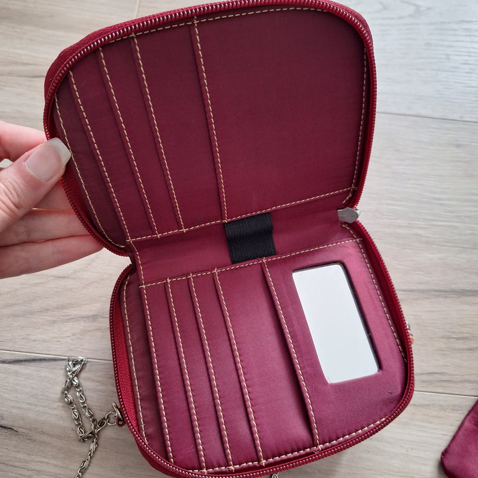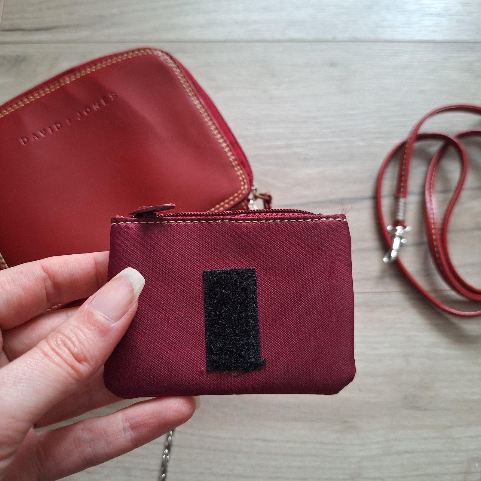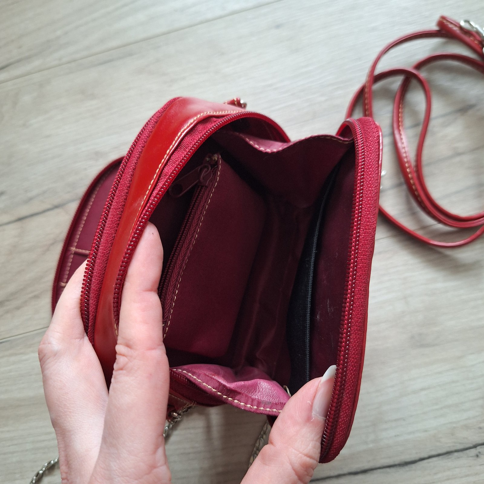 Malá kabelka s peňaženkou 2v1 + malá vyberacia peňaženka na mince. 2 ramienka - červené a retiazka.