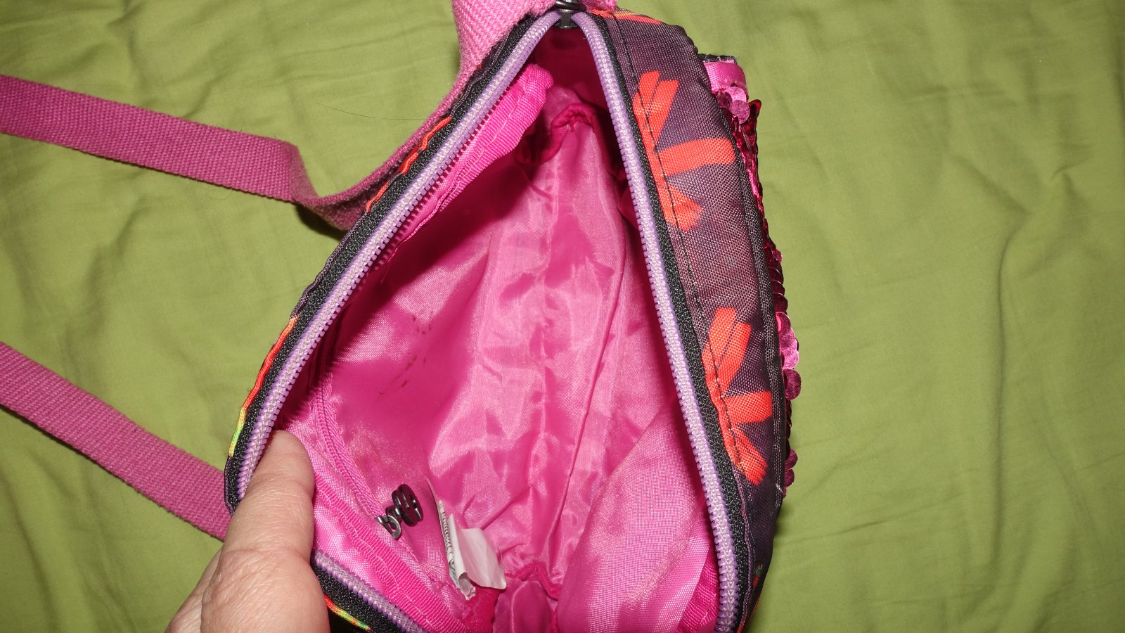 Krasna kabelka vo velmi dobrom stave. Na prednom vrecku sa vytrhlo zapinanie (vid foto).