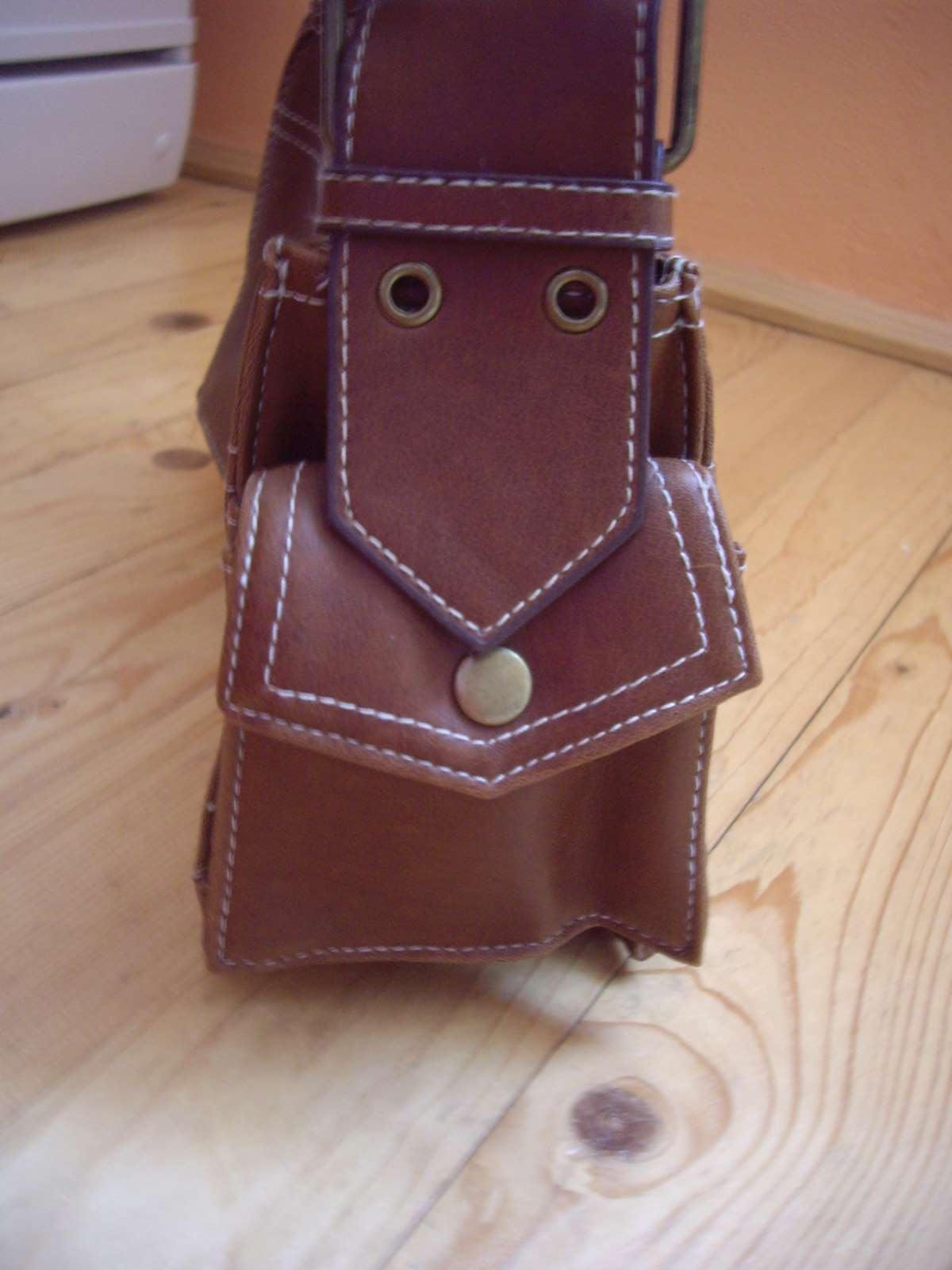 Predám crossbody kabelku Desigual, rozmer 26x24cm plus popruh, vnútri viac priehradiek. Farba tmavohnedá a mix farieb. Jediná vada kabelky je chýbajúci kožený krúžok, ktorým prechádza popruh (viď f...