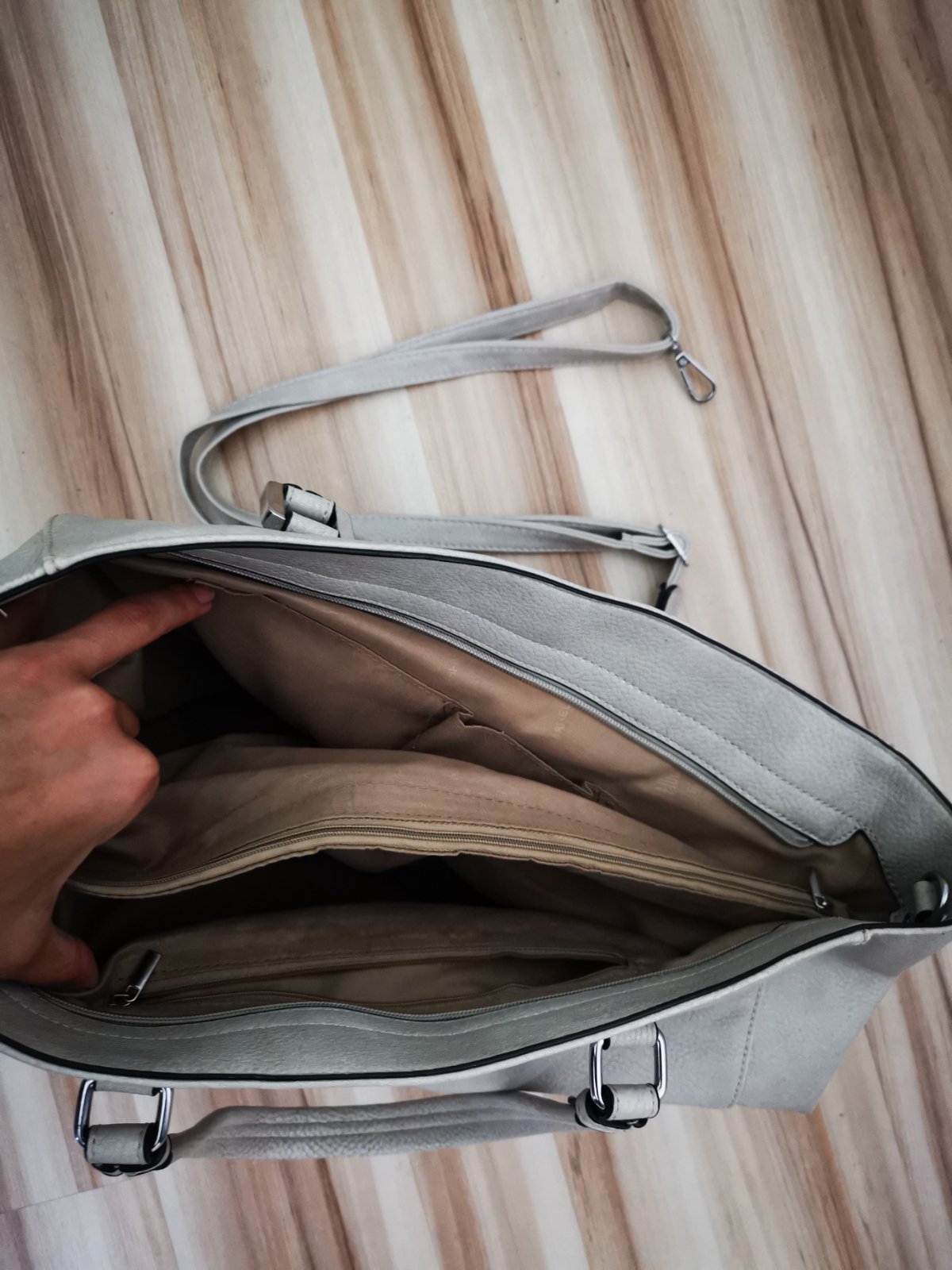Neutrálna farba, hodí sa ku všetkému. Málinko nosená, bez poškodenia. Dlhý popruh je súčasťou, vnútri má veľa vreciek.