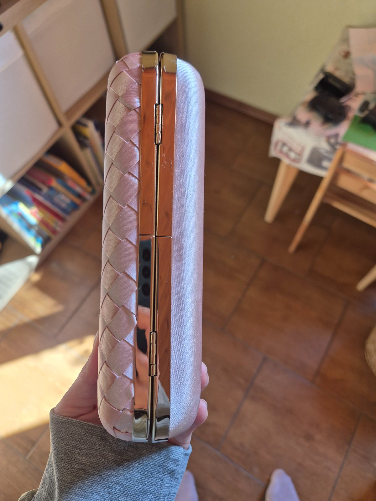 Baby Pink listová kabelka na retiazke, pouziva 2 krat. Dostala sa synovi do rúk, takže jej stav je podrobnejšie na fotkách zachytený.
