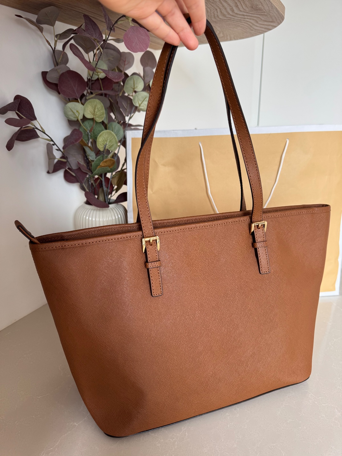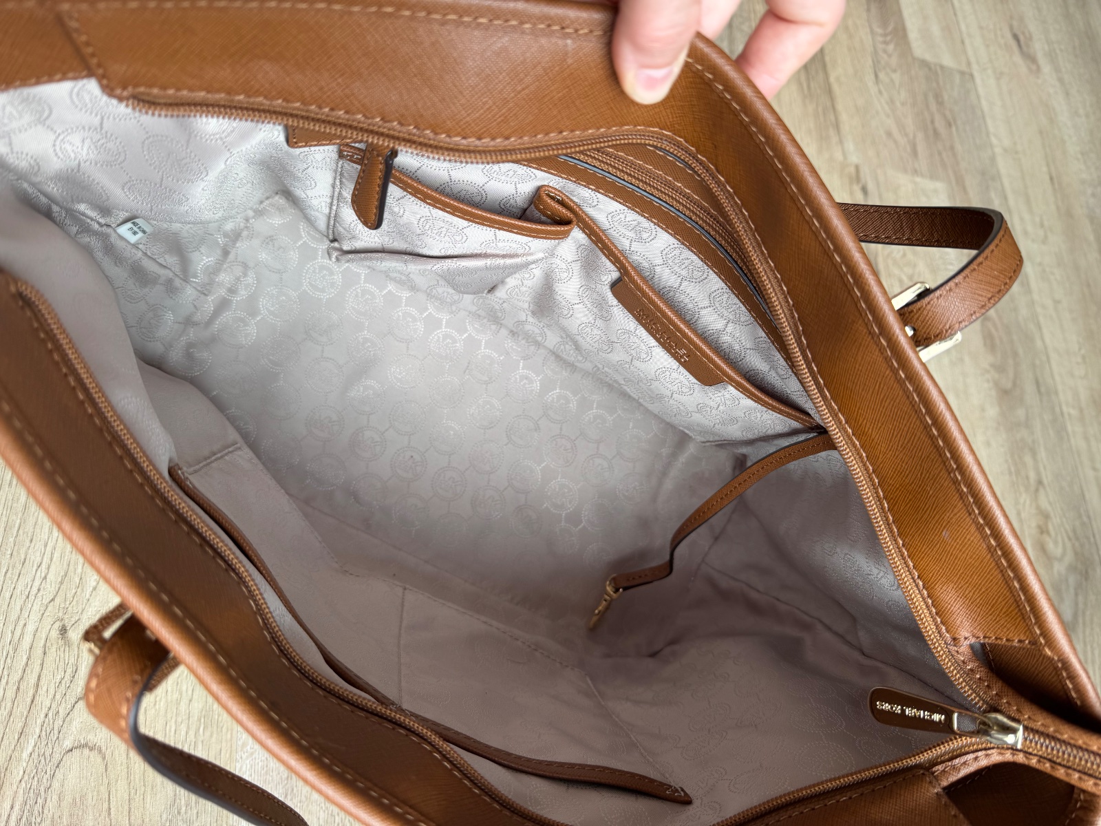 Kors. Materiál saffiano koža. Rozmer: šírka v najširšej časti 44cm, výška 27cm. Bez poškodení