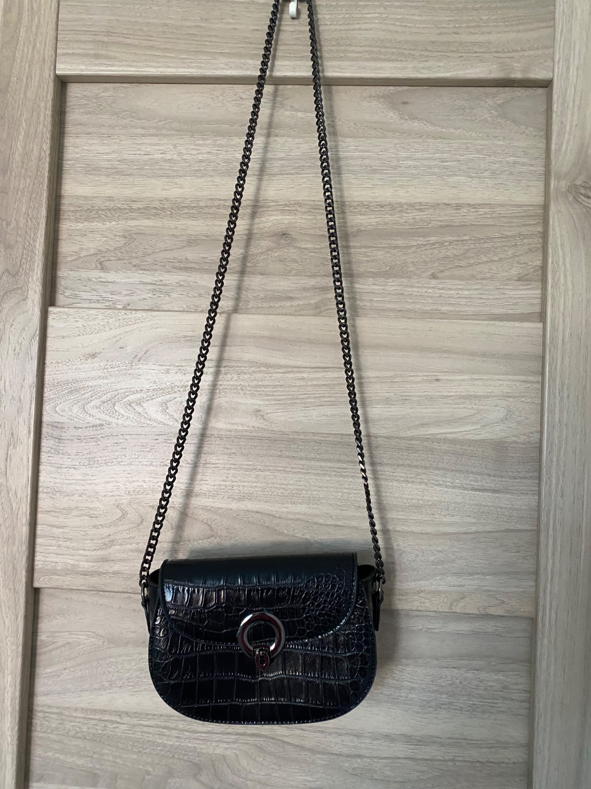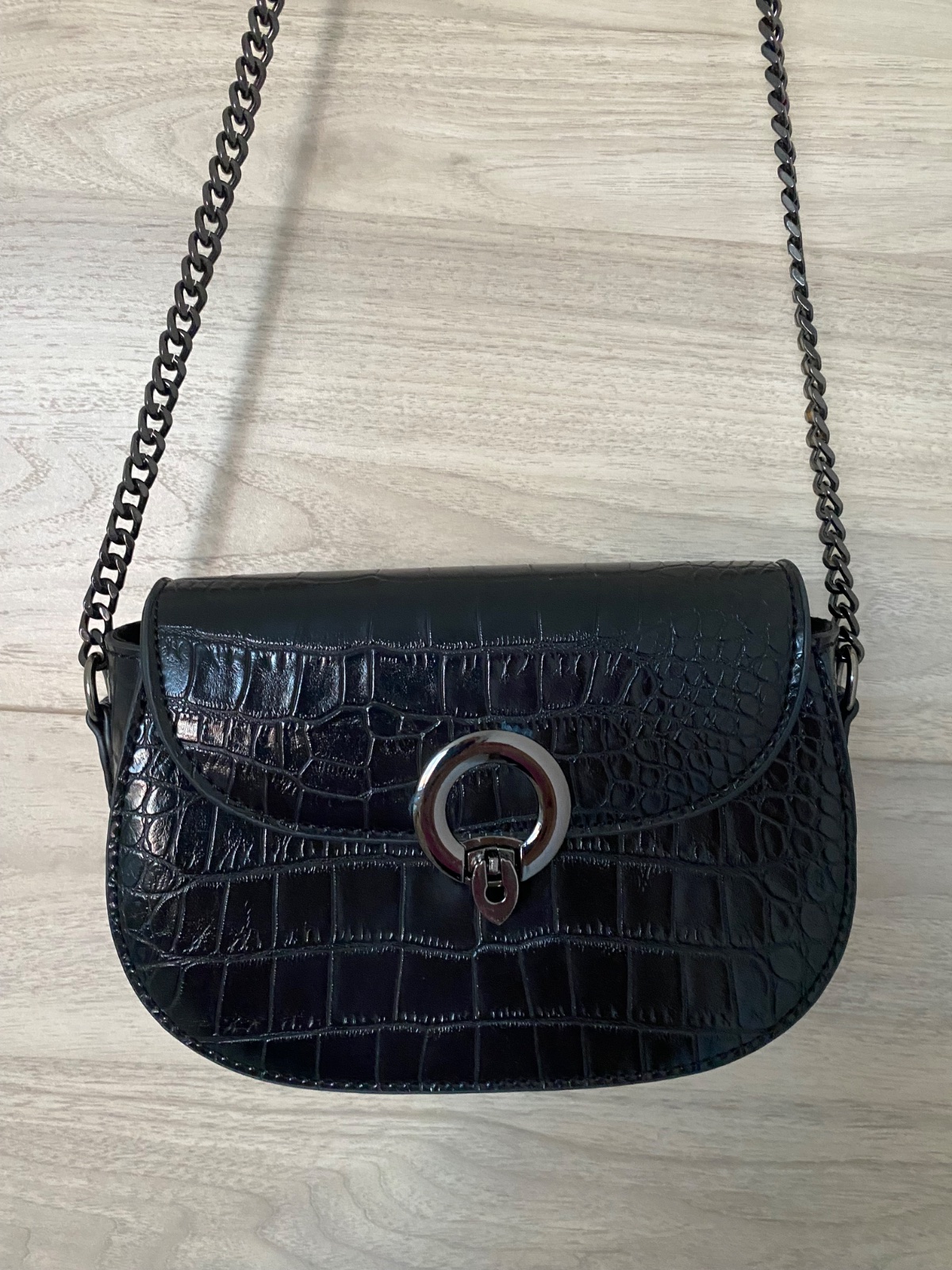 Čierna malá elegantná kabelka so zlatou retiazkou