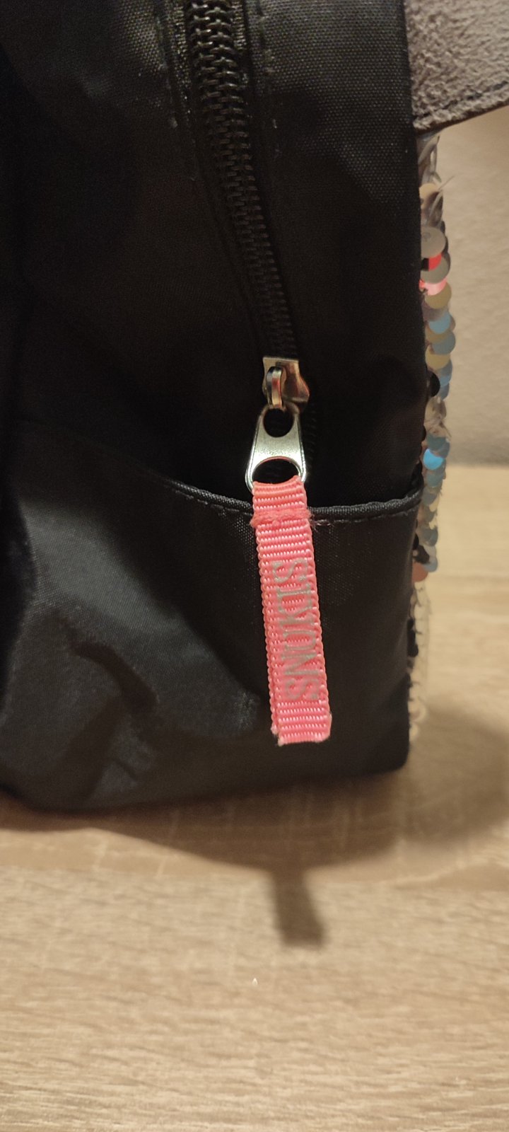 Veľmi milý ruksacik,bez poškodenia, bočné vrecká, flitre