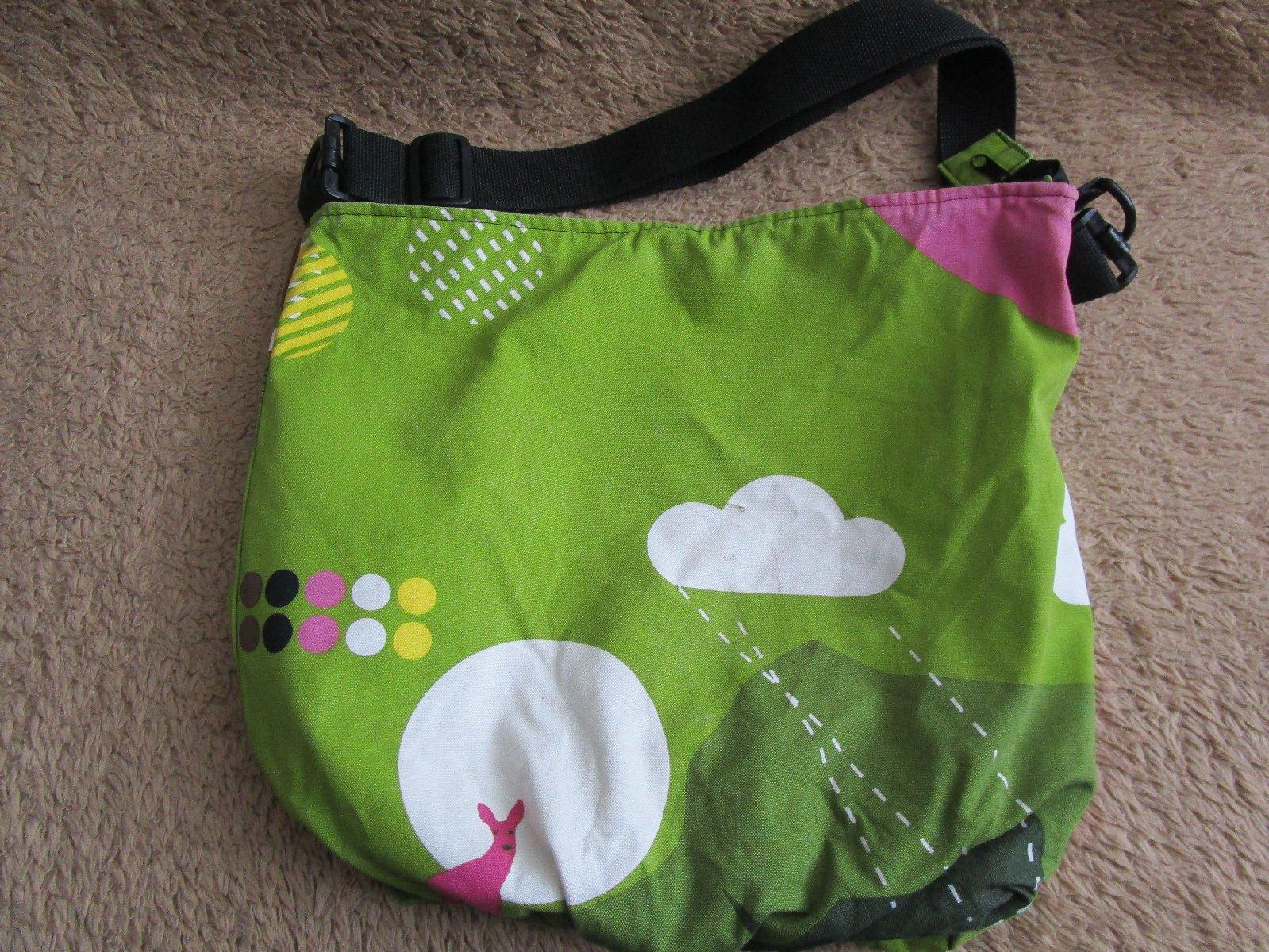 Popruh cez prsia, odopínateľný, dlžka nastaviteľná. Taška je zhotovená z pevnej bavlny. Ukrýva podšívku a našité kapsy. Taška sa uzatvára na zips -funkčný. Vojde tam A4!