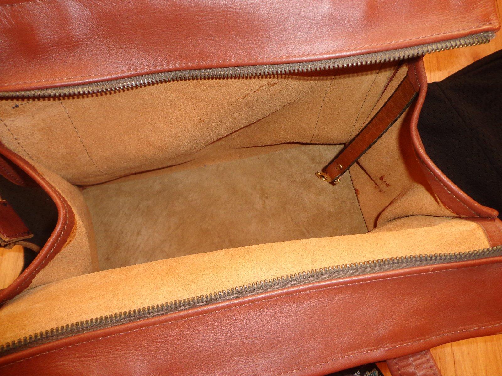 Kožená kabelka, ručná výroba, vrecko na uloženie, dostala som, no nevyužijem, nebola použitá, len odložená v skrini a trošku sa mi odrala na spodnej časti na rohoch. Kvalitná koža, je to vidieť aj z vnútra, zatváranie na zips. Vybavenie nemá. Má pracku na kľúče, na ktorú sa dajú zavesiť. Pôvodná cena: 130 Eur