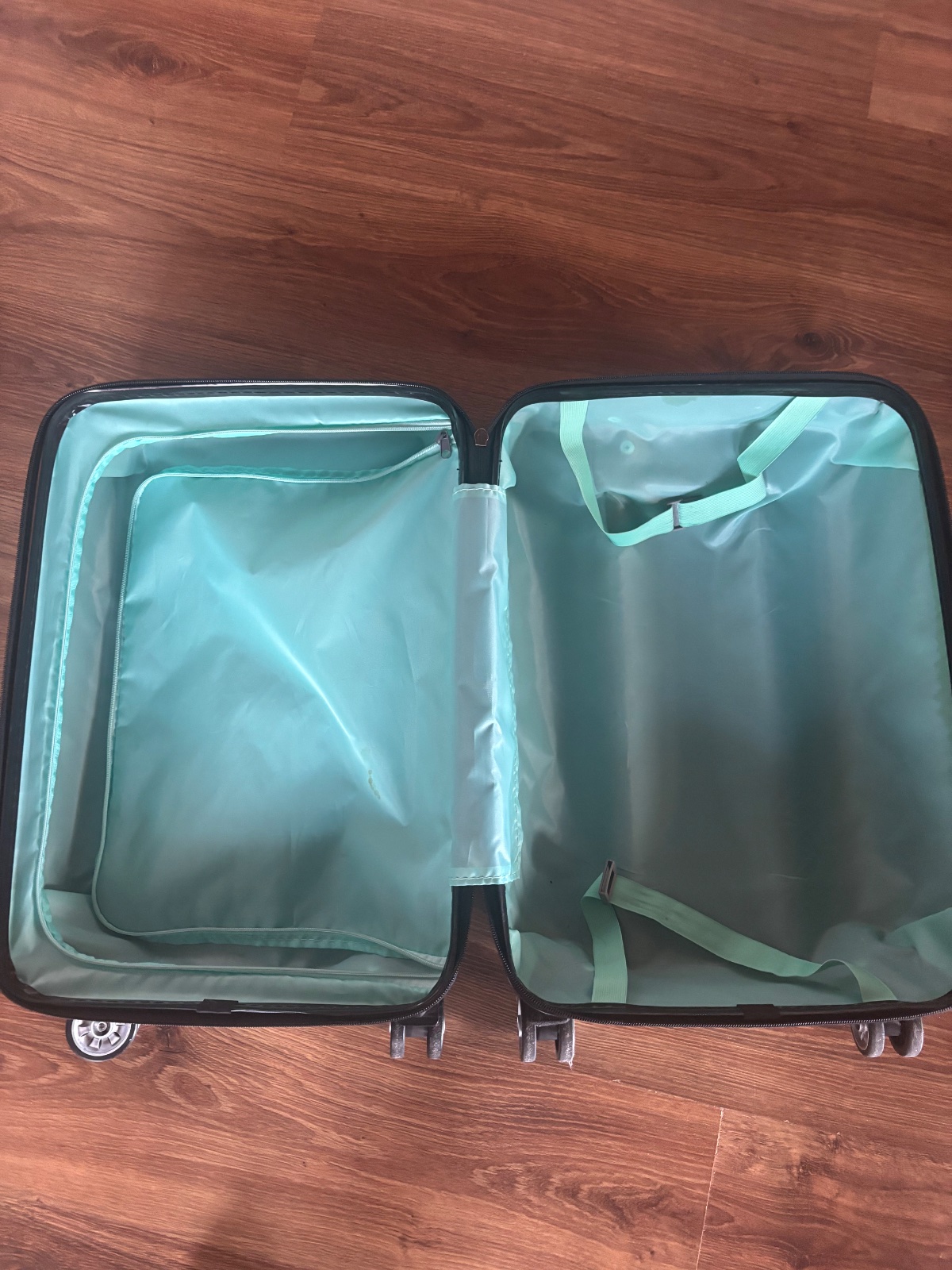 Cestovna velka taska na kolieskach a ma aj ramienko na plece. Je trochu suchnuta a trochu sa para rucka viď foto. Je priestranna ma tri ulozne priestory. Bezne znamky pouzivania. Je velmi pevna. P...